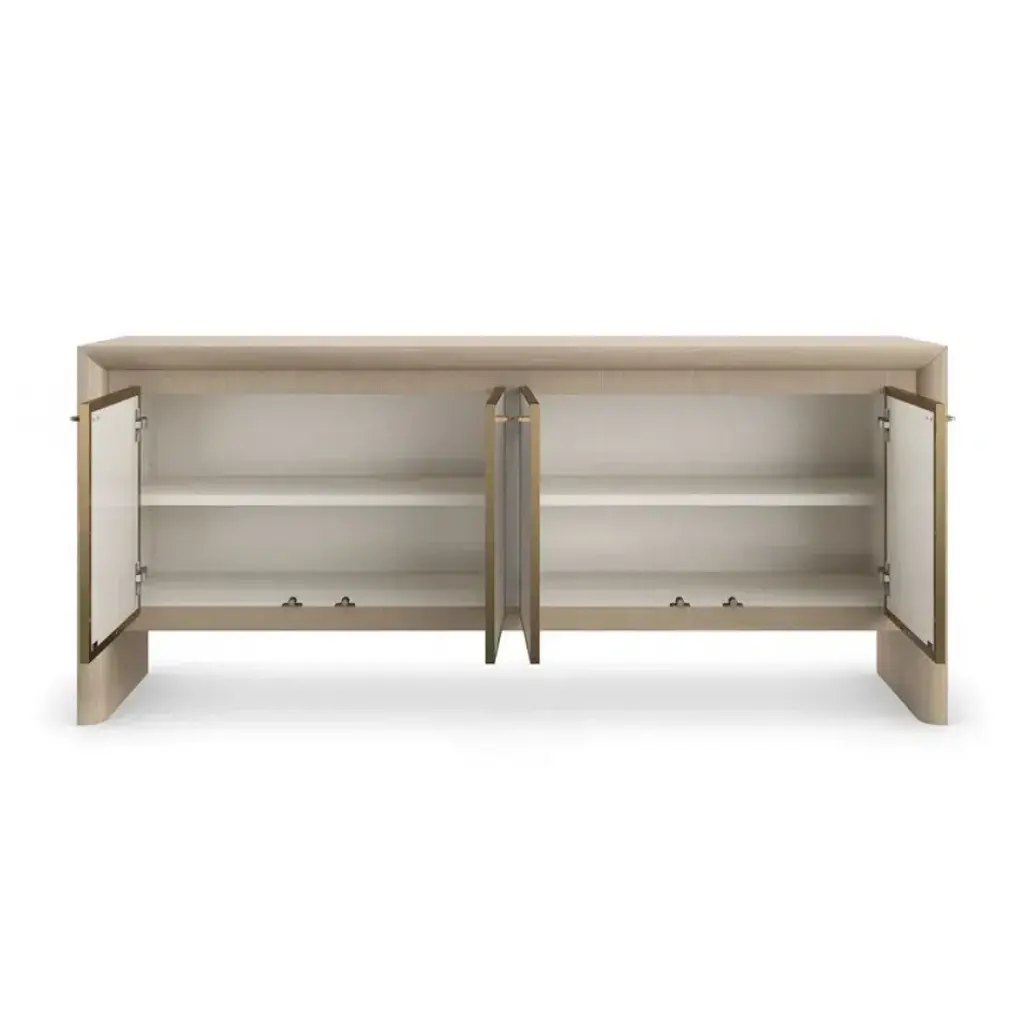Unity Credenza Sideboard/buffet Sun Drenched Oak, Lucent Bronze Metallic