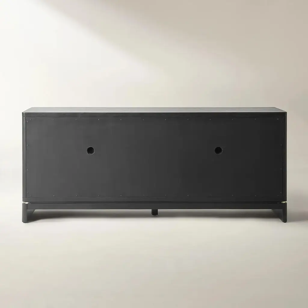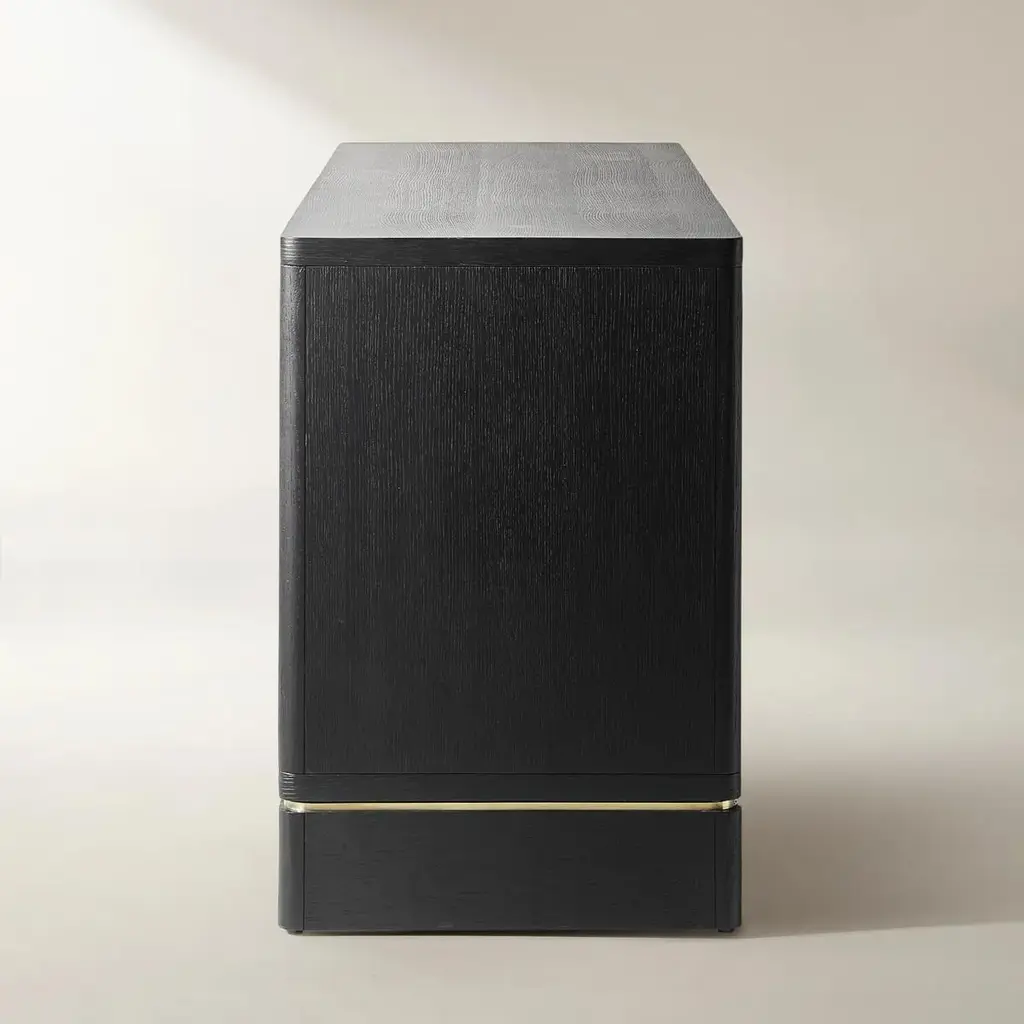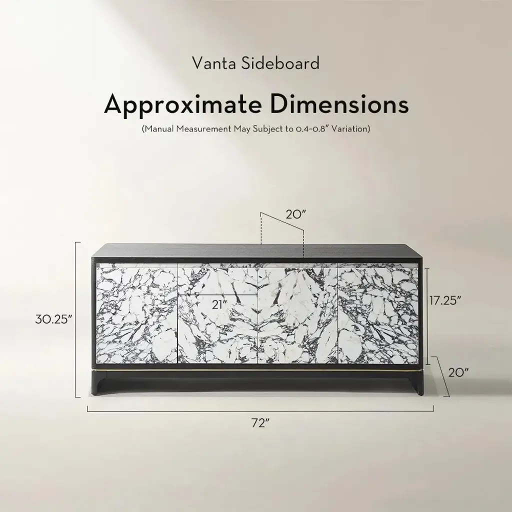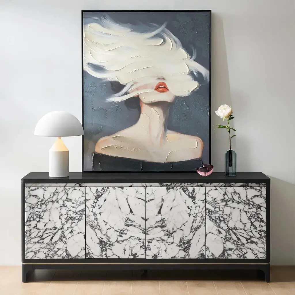The Vanta Sideboard turns functionality into fine art. Framed in matte black oak veneer and fronted with genuine Calacatta Viola marble, this luxury marble buffet brings bold contrast to tailored interiors. Each marble panel is one of a kind, showcasing violet veining that ripples across a luminous white base—rarer and more expressive than classic Calacatta. Sleek sharknose finger pulls are carved directly into the stone, creating shadow-lined grooves that feel sculptural and intuitive. Concealed storage waits behind each door, opening with a whisper-soft touch.ZG Exclusive