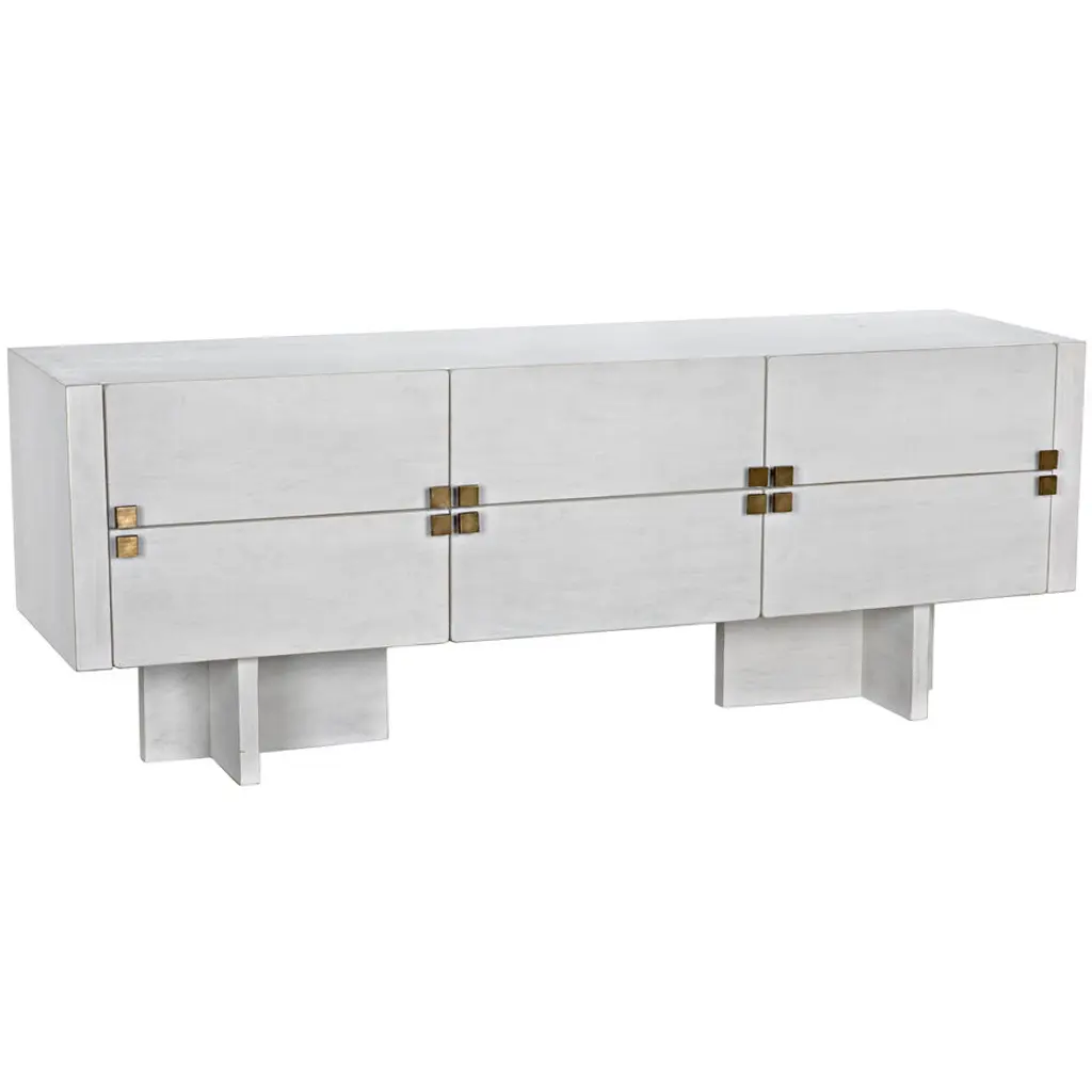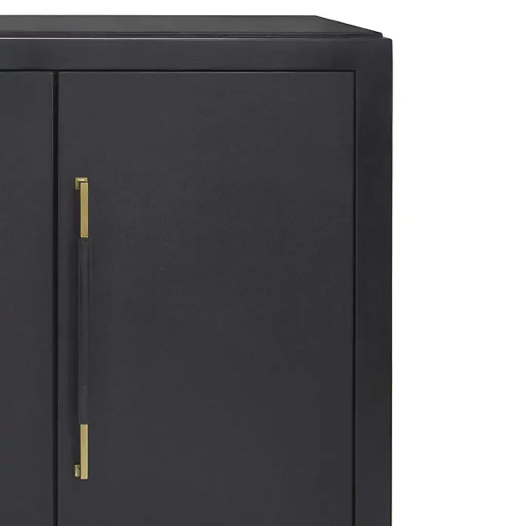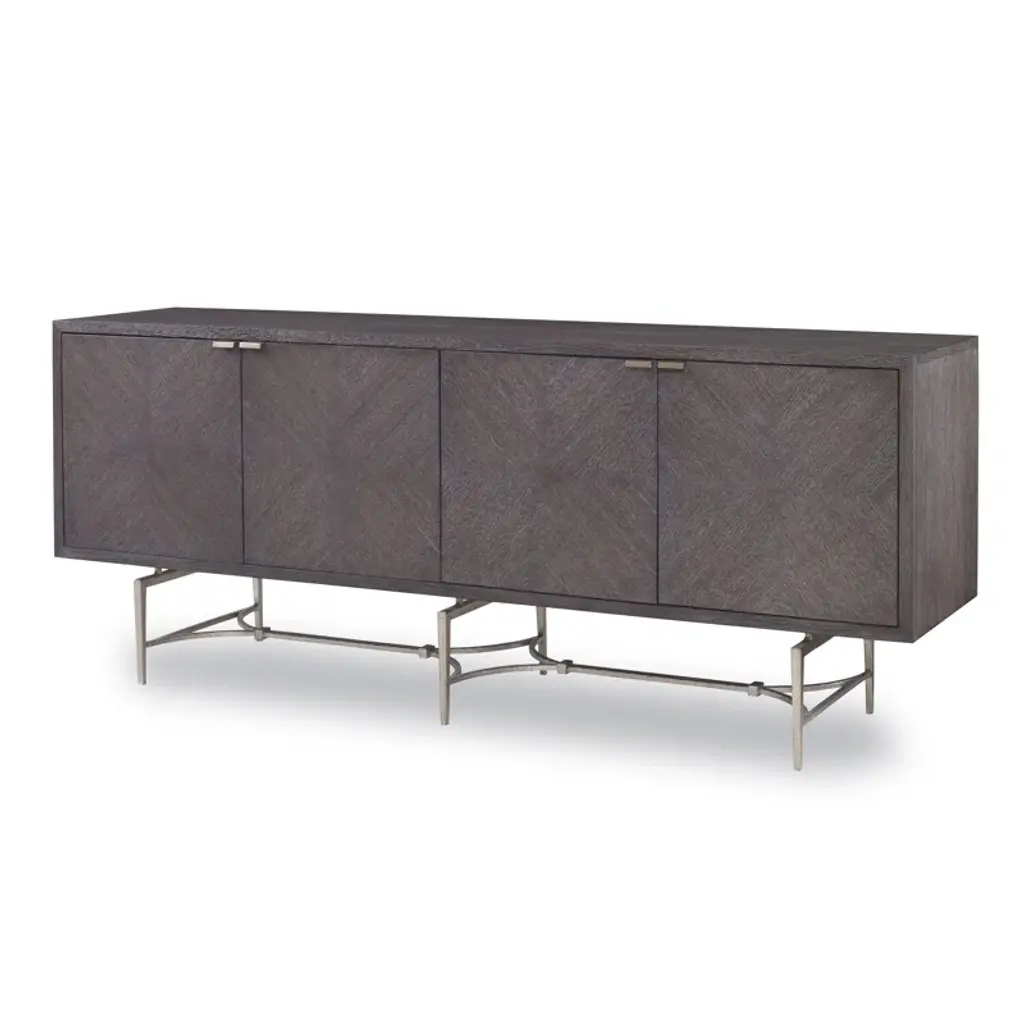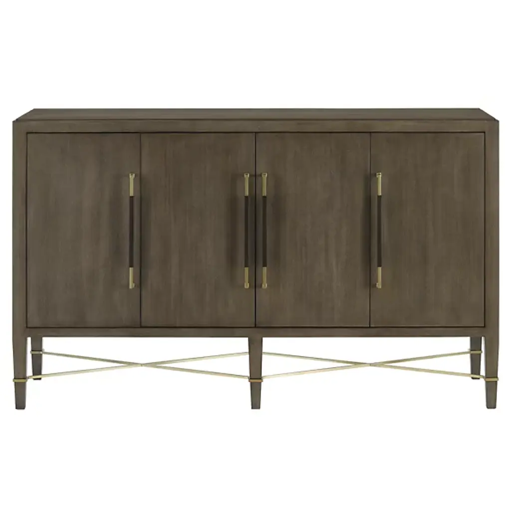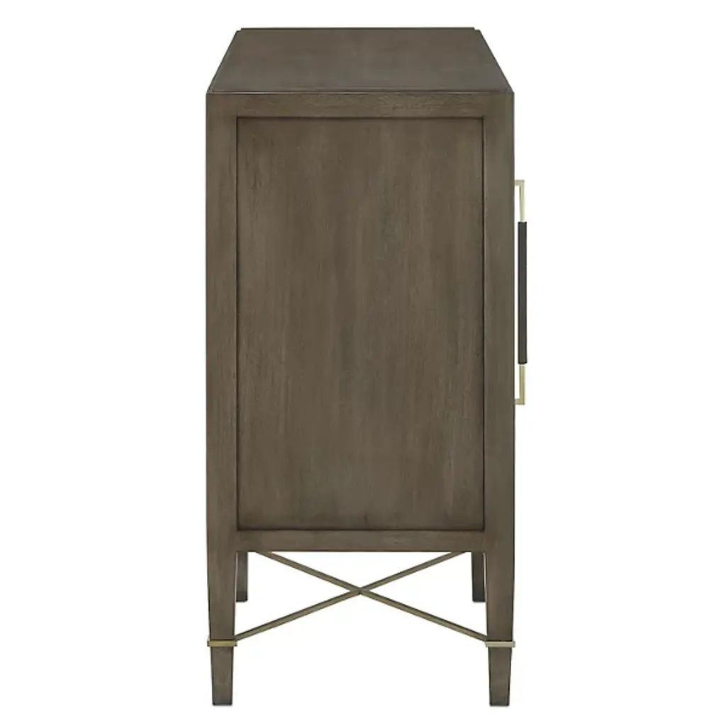 Exuding a captivating allure, the Verona Sideboard from Currey & Company boasts a sleek and darkly handsome appearance enveloped in a lustrous lacquer. The exquisite metal accents in a beautiful finish elevate the sideboard's elegance, adding a touch of refinement. The minimalist design is further adorned with stylish stretchers that infuse a distinct flair, making this piece a statement of both sophistication and contemporary aesthetics.