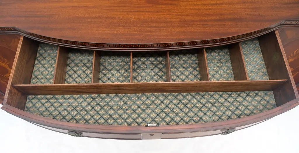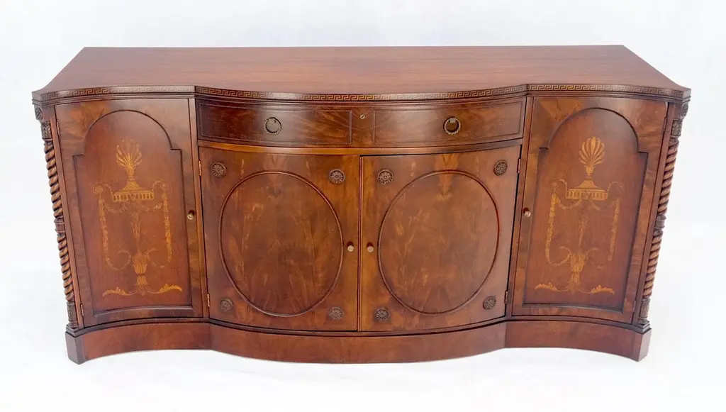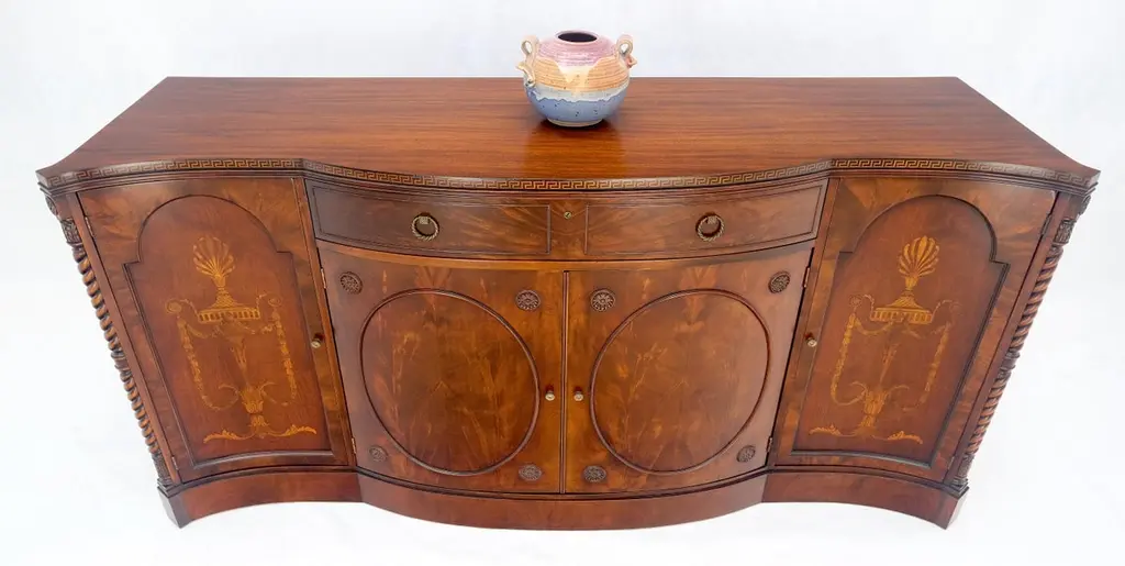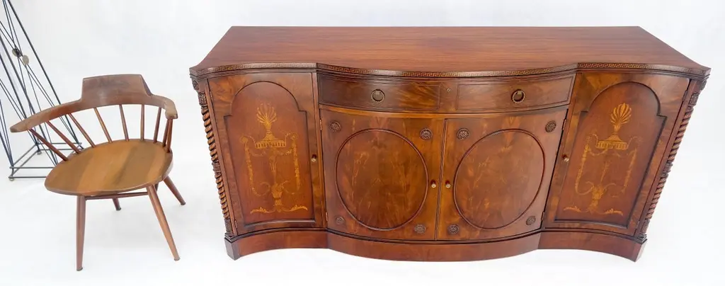 Very Fine Inlayed Serpentine Front Mahogany Sideboard Cabinet Credenza Mint!