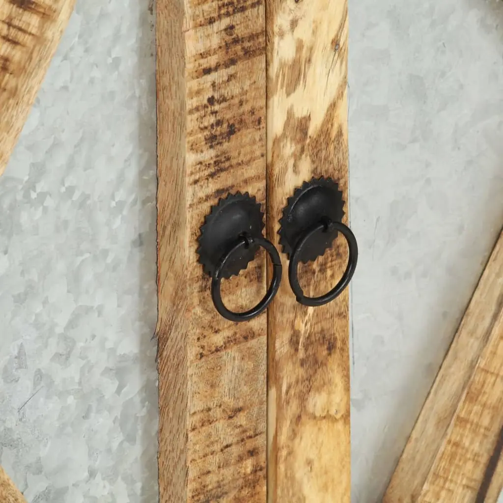 The wooden sideboard will make a timeless addition to your interior decor.The sideboard is made of solid mango wood and is highly stable and durable. Mango wood is a dense and robust hardwood which has beautiful brown or golden streaks and contours on its surface. Its sturdy top is ideal for placing decorative items such as vases or potted plants. The cabinet provides ample storage space for keeping your various items neatly organized. Its unique decorative patterns add to the sideboard's modern charm. And galvanized steel legs add to sturdiness and durability. The product is easy to assemble.Important note: The colors and grains of the wood may vary from piece to piece, making each piece unique and slightly different from the next. The delivery is random, ensuring the exclusivity and individuality of your product.