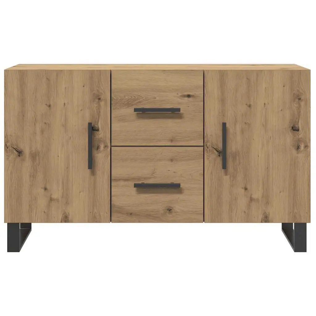 This Artisan Oak Sideboard mixes practicality and style, making it a fab addition to your living or dining room. It’s got a lovely brown finish and smooth texture that adds a modern touch, providing plenty of storage while boosting your space’s charm. Ample Storage Space: With four drawers and two doors, this sideboard offers great storage for dining items, decorations, and more, keeping your living area neat and tidy.Modern Design: Its contemporary vibe with clean lines and matte finish adds sophistication to various decor styles, suiting both traditional and modern interiors.Durable Construction: Built from engineered wood, this piece is made for daily use while keeping its charm over time, ensuring it's strong and stylish.Stability: The sideboard comes with metal feet for added stability and support, keeping it secure even when fully loaded.Versatile Use: Whether it’s serving food at gatherings or being a smart storage solution in your hallway, this sideboard adapts to your needs, making it a great addition to your home.