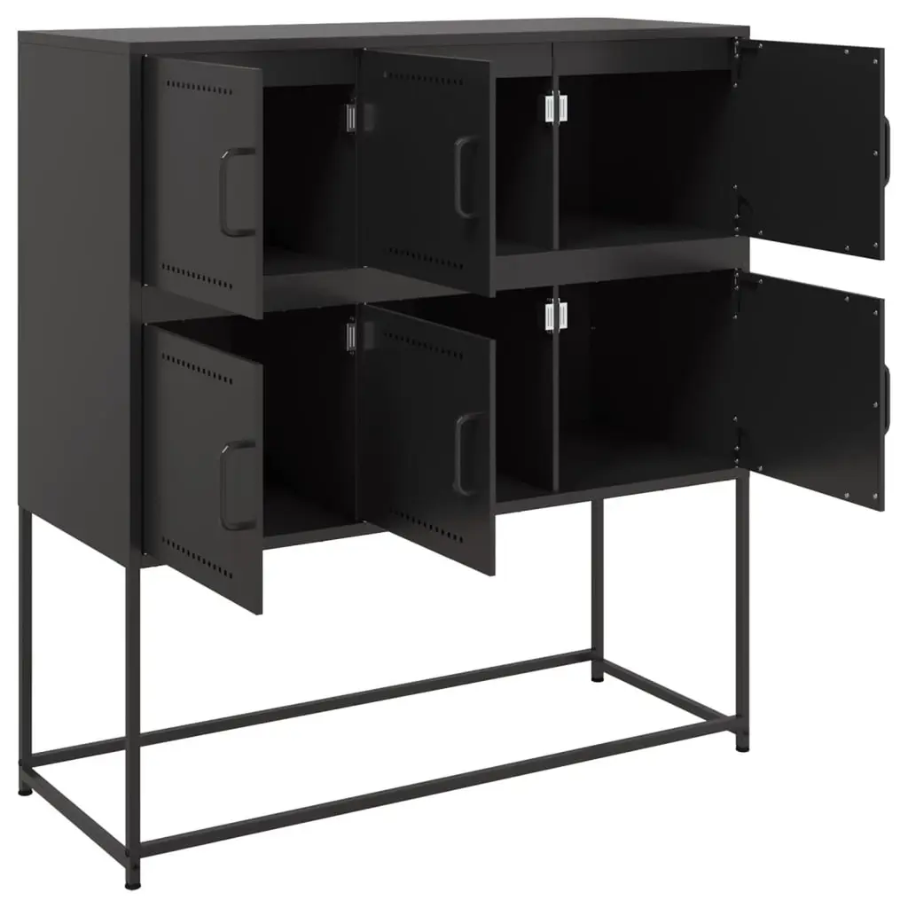 This Modern Black Steel Sideboard adds a contemporary twist to your living area while providing style and function. It's designed to be straightforward, with a striking black finish that fits right in with different interiors, making it a fab focal point while meeting storage needs. Trendy Appearance: The sleek black color and smooth texture give this sideboard a stylish vibe, making it a fab addition for modern homes. Six Doors for Accessibility: This sideboard’s six doors swing wide open so you can easily access all your stuff, keeping your living room sorted and tidy. Robust Construction: Made from sturdy cold-rolled steel, this sideboard is built to last, ensuring it’ll stick around for years. Versatile Use: Perfect for your living room or dining area, this sideboard is ideal for storing everything from dinnerware to books and decor pieces. Simple Cleaning: The powder-coated finish makes maintenance a breeze; just give it a wipe with a damp cloth to keep it looking good as new.