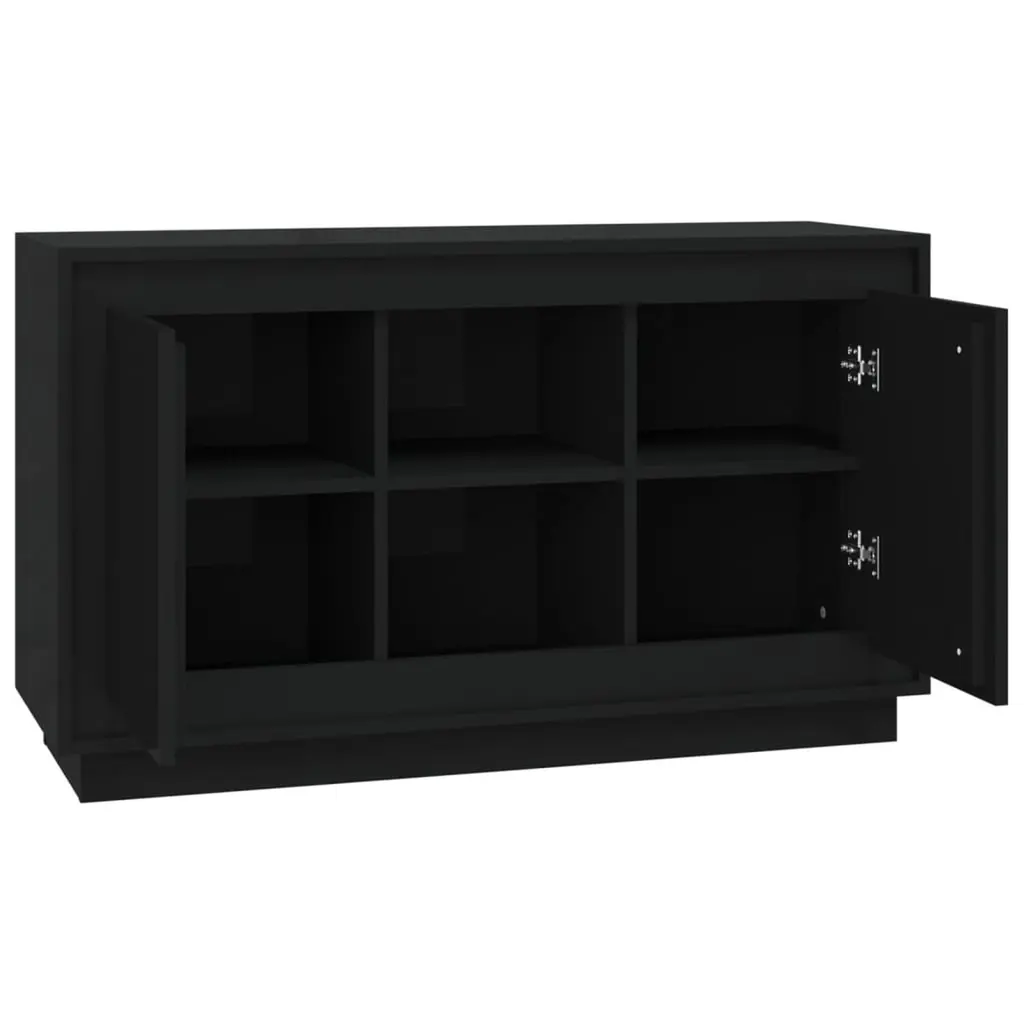 The Modern Black Engineered Wood Sideboard is a must-have for any contemporary living area, blending functionality with style. Its sleek, matte finish and chic design make it a standout piece in your living room, dining area, or office while providing solid storage options to keep things neat and tidy. Spacious Storage: This sideboard has loads of accessible storage with four generous shelves. You can fit books, decorations, or everyday essentials on them, making sure everything’s in its place.Sturdy Construction: Made from strong engineered wood, this piece is built to last. It’s designed to keep looking good over time with a surface that’s easy to wipe clean.Stylish Appearance: The modern look is underscored by its sleek black color, making it fit in with various decor styles while adding a contemporary touch.Safe and Secure: Designed with safety in mind, this sideboard should be secured to the wall for peace of mind when placing your favorite items on top.Versatile Usage: Whether it’s for a plant stand, product display, or an all-purpose storage solution, it fits well in living rooms, home offices, or dining areas.