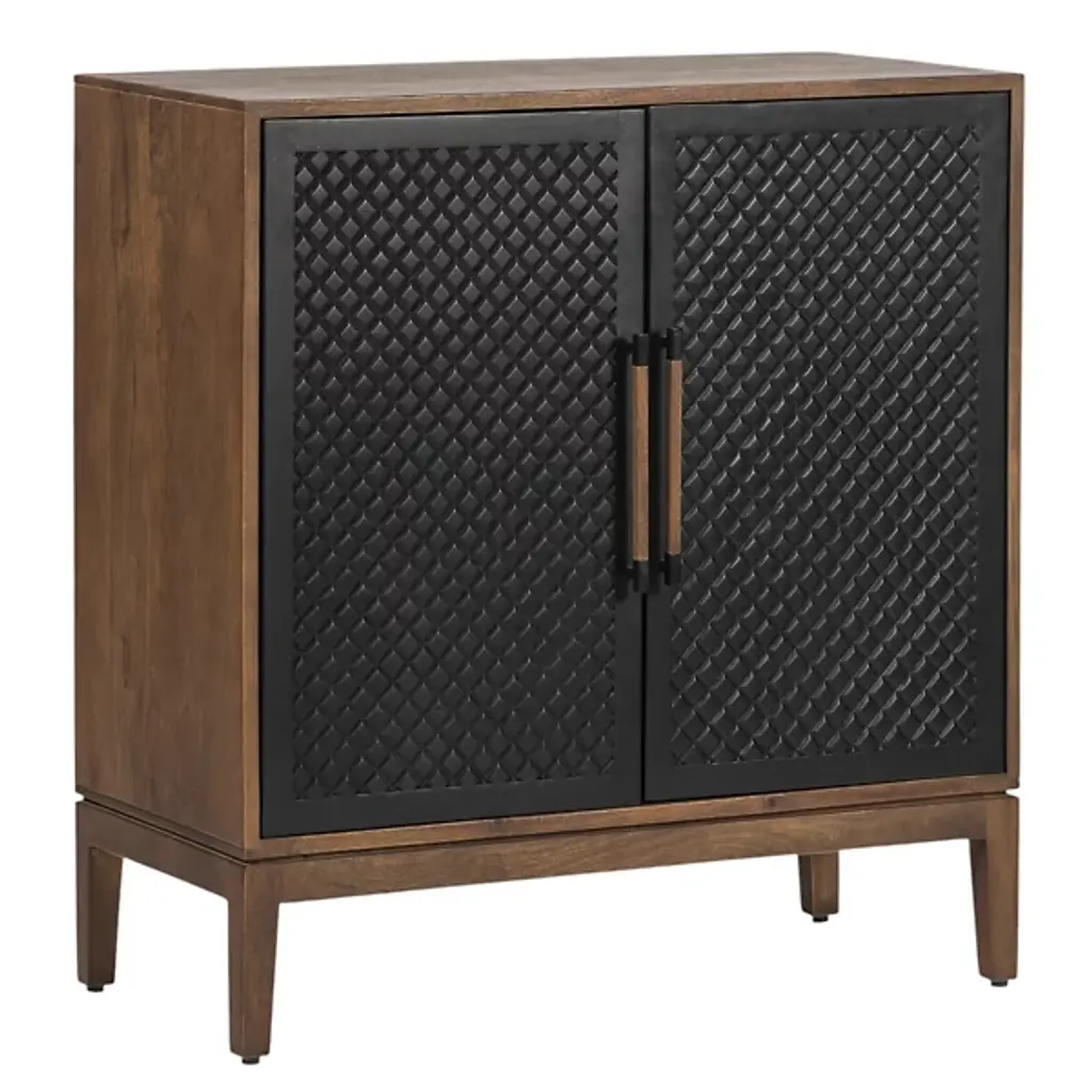 This industrial-style sideboard mixes solid mango wood with durable iron for a perfect storage solution. It has a strong visual presence that gives off urban loft vibes, making it a stylish addition to living rooms and bedrooms with its natural wood grain and metal accents. High-quality build from solid mango wood and durable iron for reliability in daily use.The two panel doors boast hand-carved designs that are not just for looks but also add a creative touch to your home.Perfect for keeping a range of items, from linens to collectibles, this piece is a versatile addition to any room.The sideboard's industrial style fits seamlessly with both modern and traditional decor, complementing various interior designs.Measuring 23.6In long, 13.8In wide, and 29.5In tall, it provides plenty of storage without overcrowding your space.