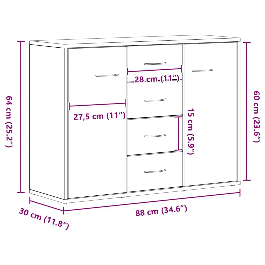 Vidaxl Sideboard Black Oak 34.6x11.8x25.2" Engineered Wood