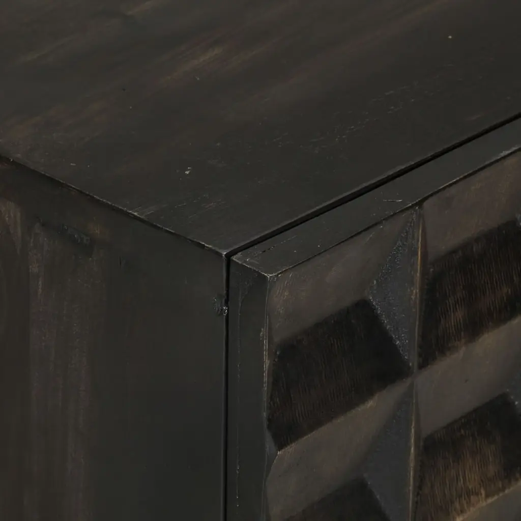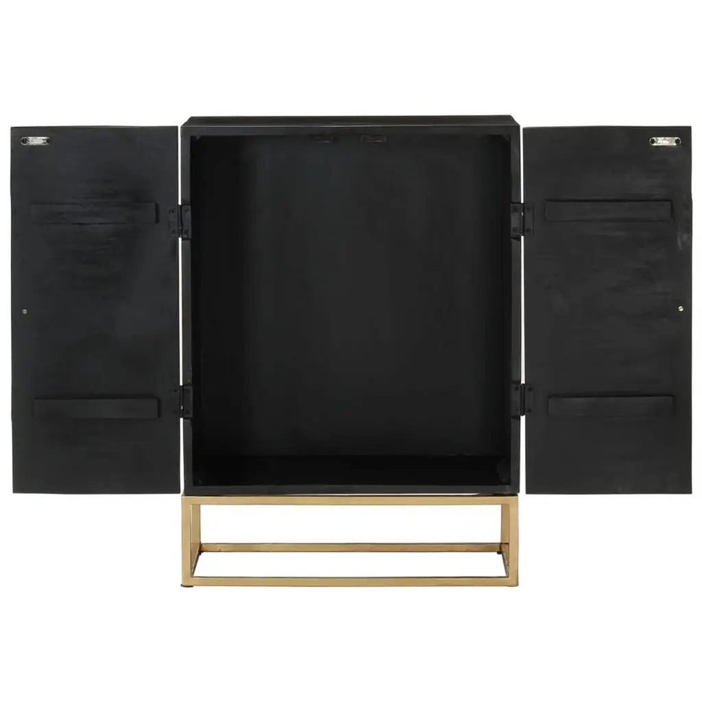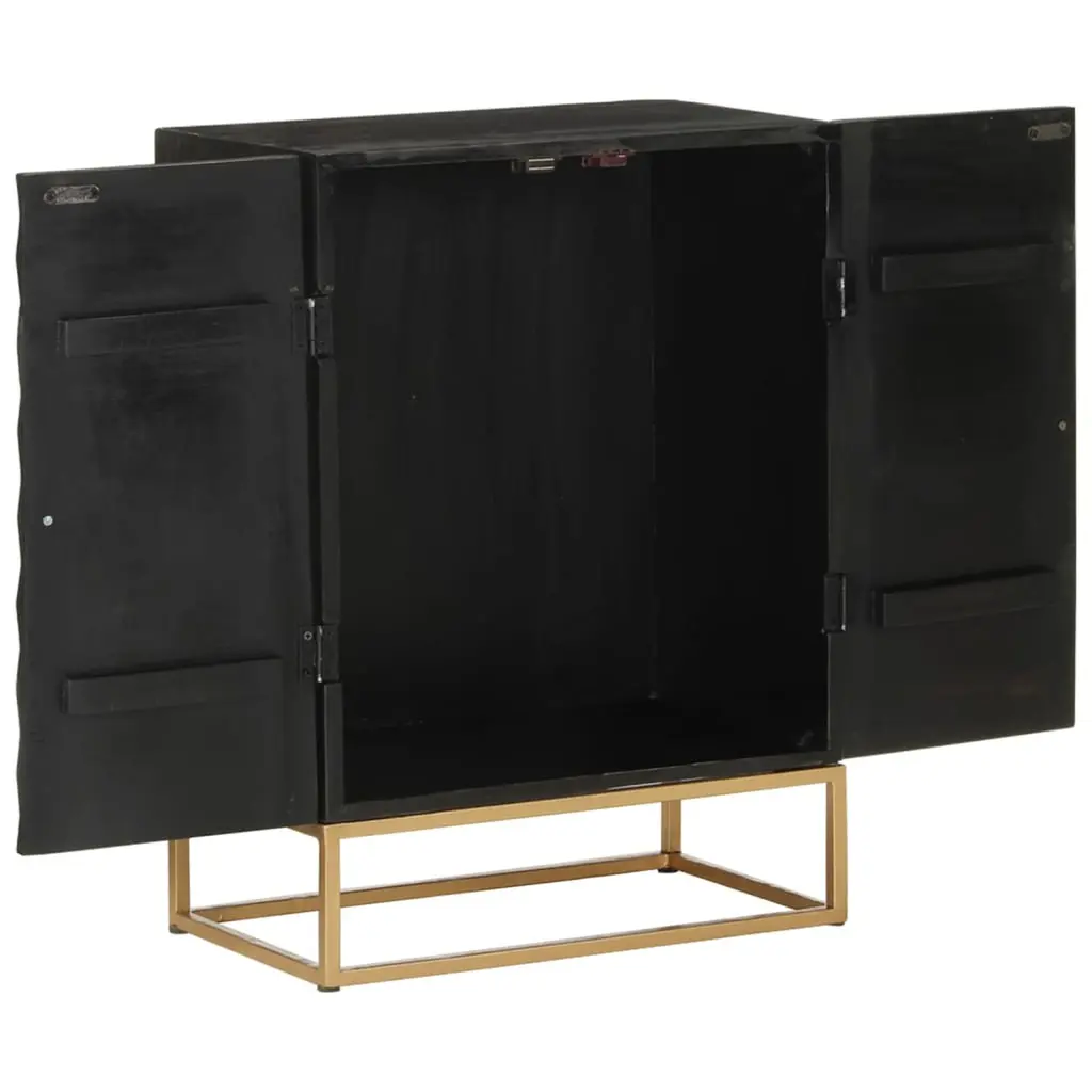 This Industrial Style Black Sideboard is a real showstopper, expertly designed to blend functionality with style. Its sturdy build with solid mango wood and iron serves as both a storage solution and an eye-catching piece in any living space, capturing the vibe of urban loft styles while offering tons of utility. Ample Storage: This sideboard's got a two-door cabinet that's perfect for keeping your things neat.Stylish Industrial Design: The mix of black powder-coated metal and solid wood adds some rustic charm, making it a great fit for any home style.Unique Wood Variations: Each sideboard is one-of-a-kind, with distinct grains and finishes showcasing the natural beauty of solid mango wood.Stable Base: Built with four sturdy legs, this sideboard remains stable while securely holding your belongings.Dimensions: At 29.5 in tall, 21.7 in long, and 13.4 in wide, it fits perfectly in various rooms without taking over the space.