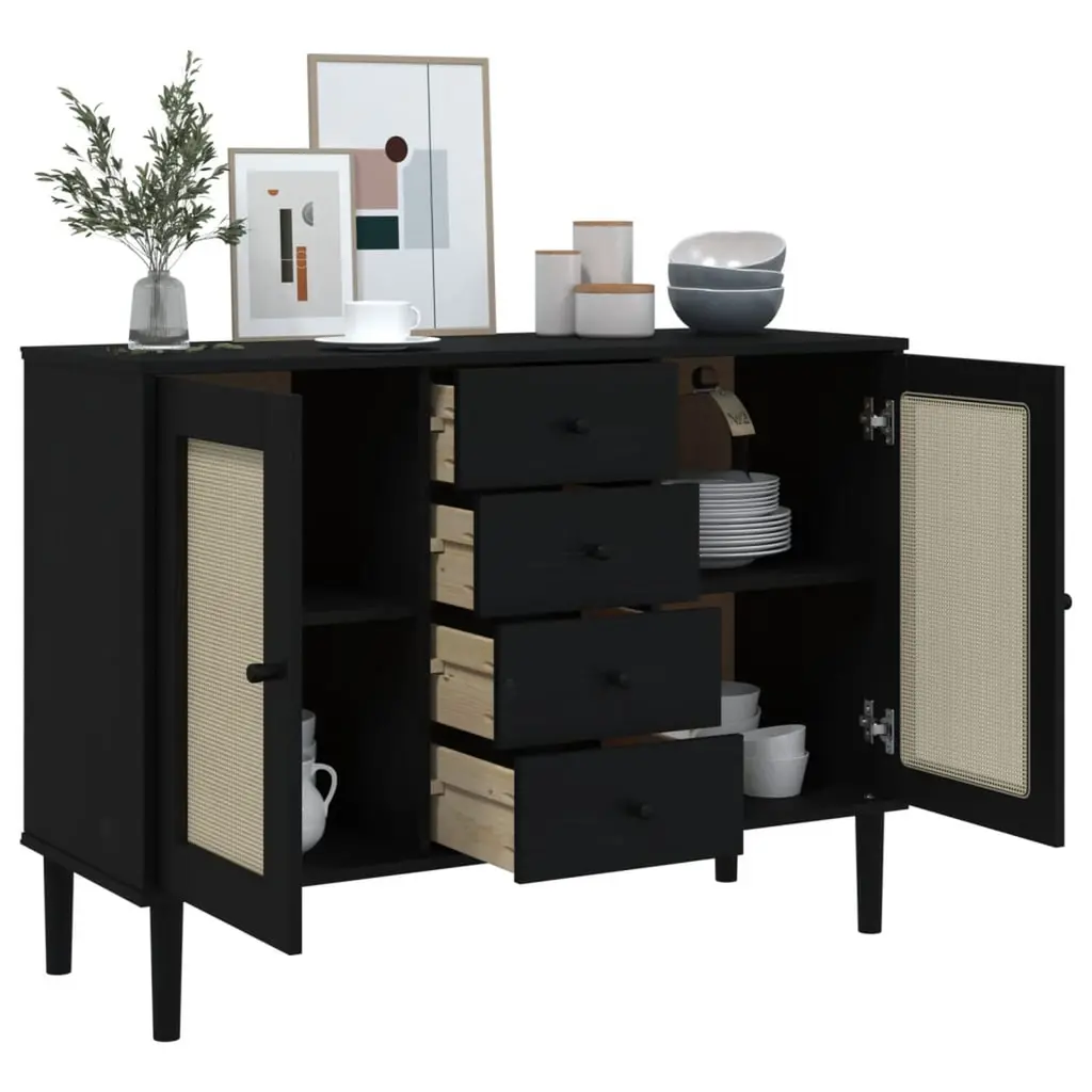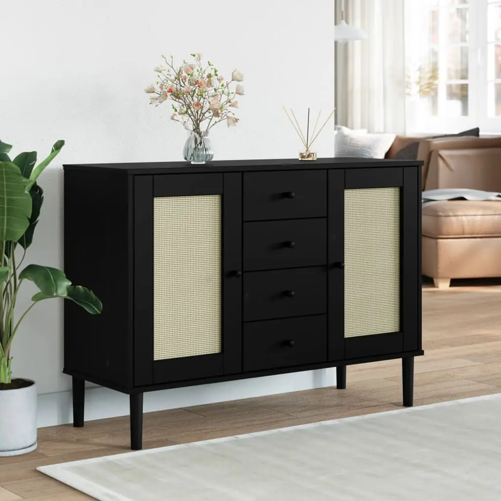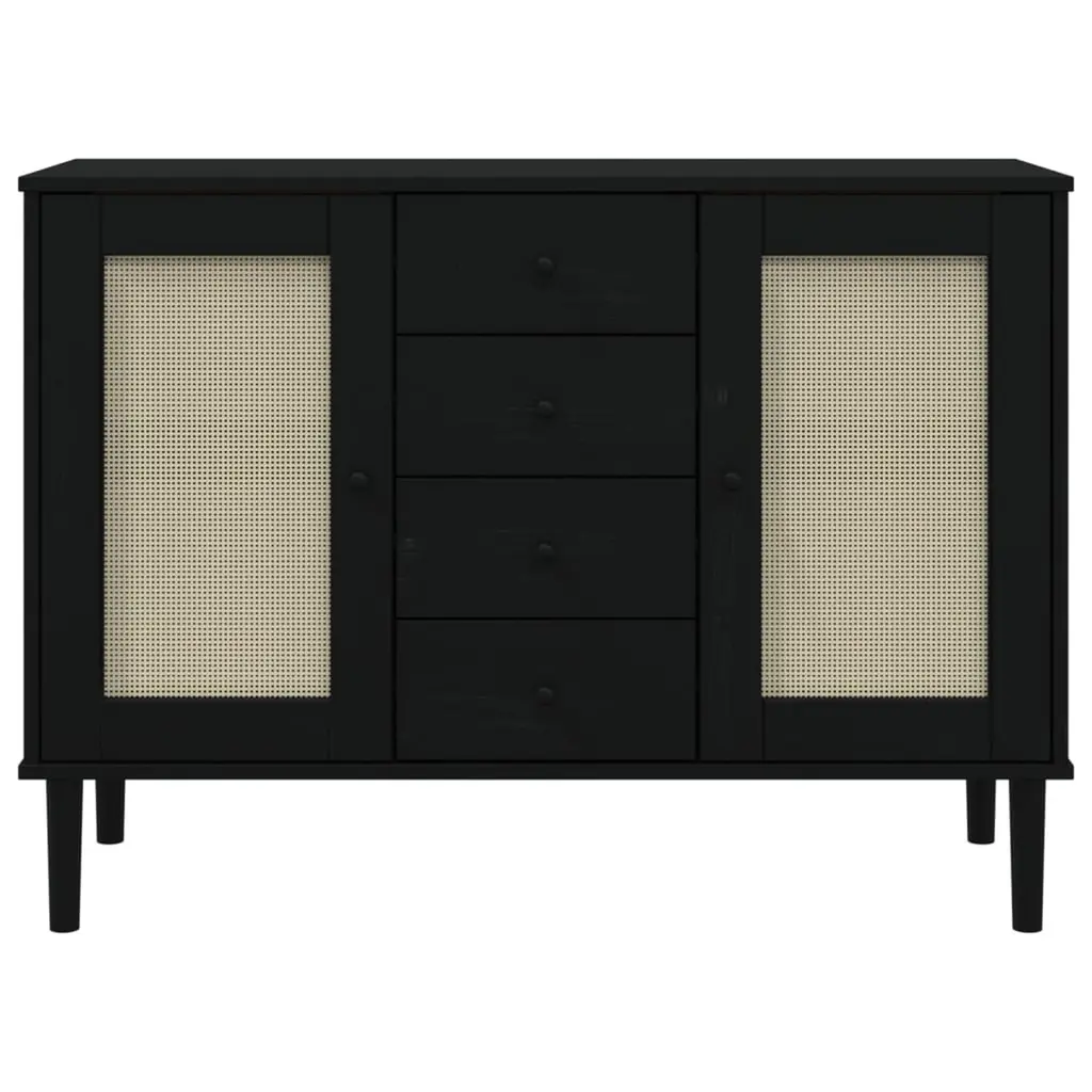 Vidaxl Sideboard Black Solid Pine Wood, Poly Rattan, Engineered Wood