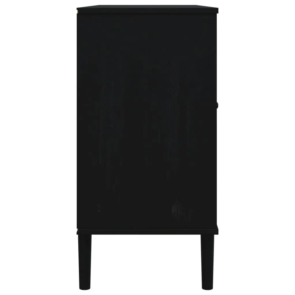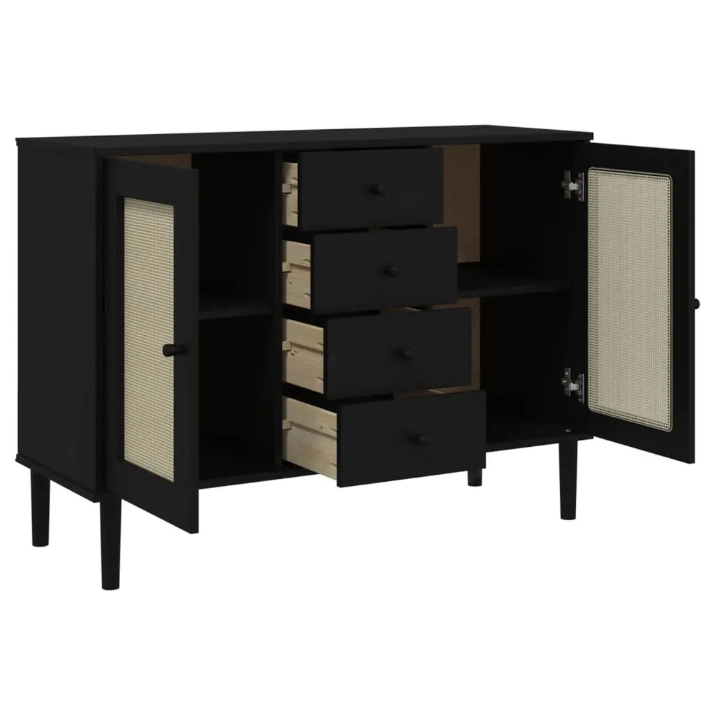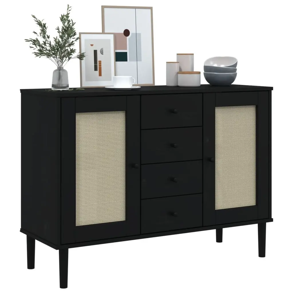 Vidaxl Sideboard Black Solid Pine Wood, Poly Rattan, Engineered Wood