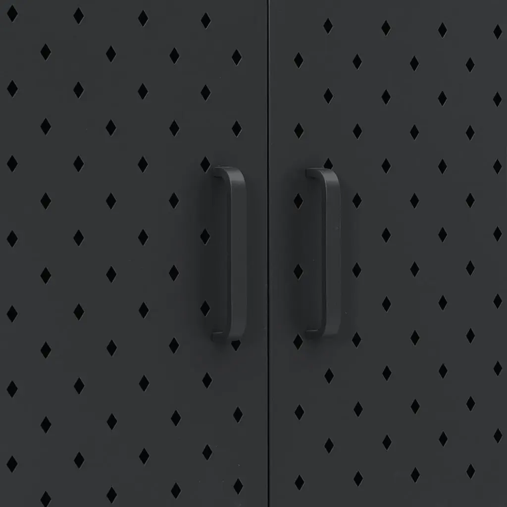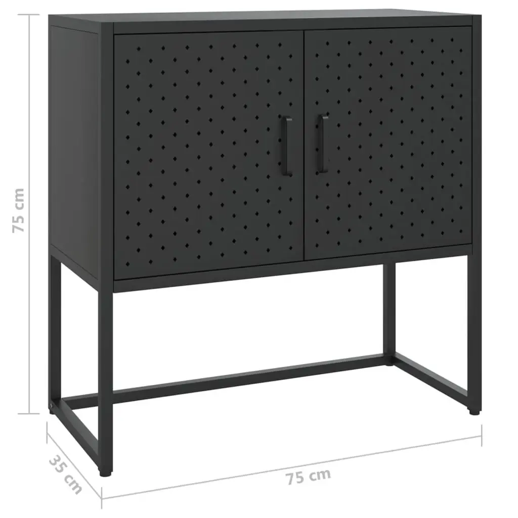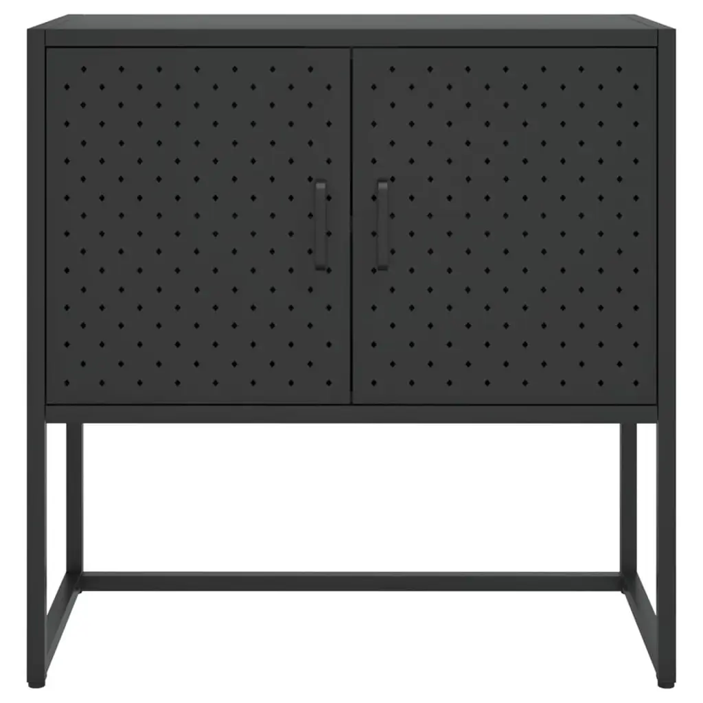 This Modern Black Steel Sideboard is a smart solution for your storage needs and will jazz up your home's look. Its stylish design and sturdy build make it a great fit for dining rooms, living rooms, or anywhere else you need extra storage – a perfect blend of function and flair. Sturdy Construction: Made from high-quality steel, this sideboard is built to last, perfect for everyday use. Its robust frame handles weight and wear, so you can store your valuables without worry. Generous Storage Space: Plenty of storage with two solid doors and one metal shelf. Ideal for organizing dishes, serving ware, or decorative items, keeping your home neat. Contemporary Appeal: The simple design and matte black finish create a sophisticated feel, a versatile addition to your style. It elevates any dining or living space. Easy to Clean: With a smooth metal surface, maintenance is a piece of cake—just wipe with a damp cloth to keep it looking sharp. Perfect Dimensions: At 29.5 in long, 13.8 in wide, and 29.5 in high, this sideboard is practical for both snug and spacious areas. Its size is perfect for various rooms without crowding them.