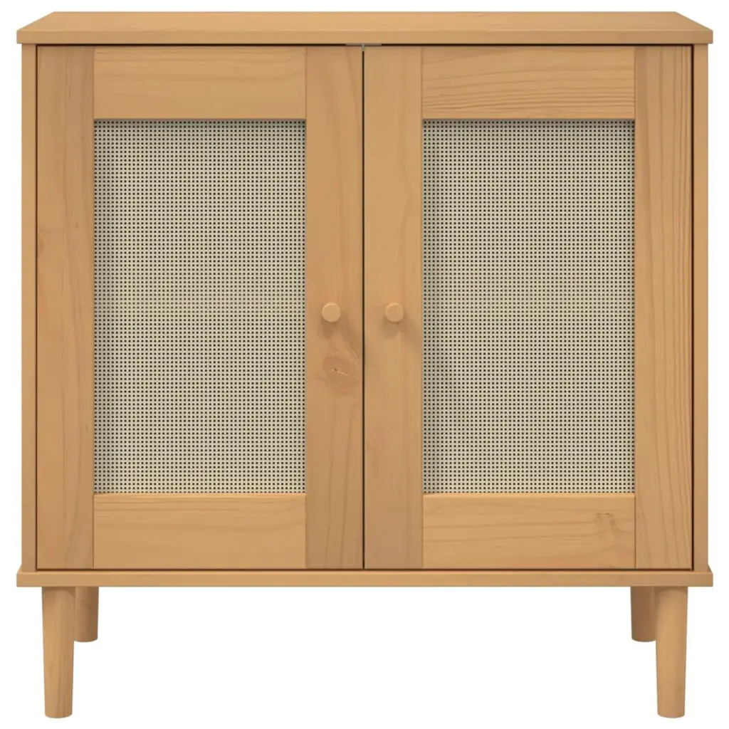 Vidaxl Sideboard Brown Solid Pine Wood, Engineered Wood, Poly Rattan