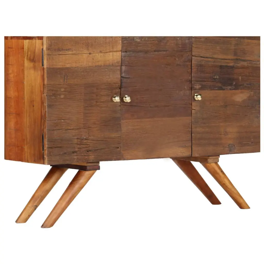 This Rustic Brown Solid Reclaimed Wood Sideboard combines functionality with a beautiful look that brightens up any living or dining area. Its earthy brown color and the natural texture of reclaimed wood add a warm, rustic elegance, fitting for any decor style, whether modern or traditional. Ample Storage: This spacious sideboard has three solid wood doors that open to reveal loads of storage, perfect for everything from dining essentials to decorative items. Keeping things tucked away helps keep your space neat and tidy.Unique Design: Each sideboard is made from reclaimed wood, meaning no two pieces are the same. This uniqueness adds personality to your space and promotes sustainable living by giving materials a second life.Durable Finish: The sideboard has a lacquered finish that gives it a glossy, tough surface that lasts while enhancing the wood's natural grain. It ensures easy upkeep and lasting beauty, so you can enjoy it for years to come.Versatile Use: Ideal for many settings, this sideboard works well in living rooms, dining areas, or hallways. Its flexibility makes it a brilliant addition, whether used as a stylish buffet for family meals or as a chic storage solution.Craftsmanship: Handmade from top-quality solid reclaimed wood, this sideboard showcases great craftsmanship, appealing to those who love artisanal pieces. Its sturdy build ensures longevity, giving you a functional yet beautiful item for years to come.