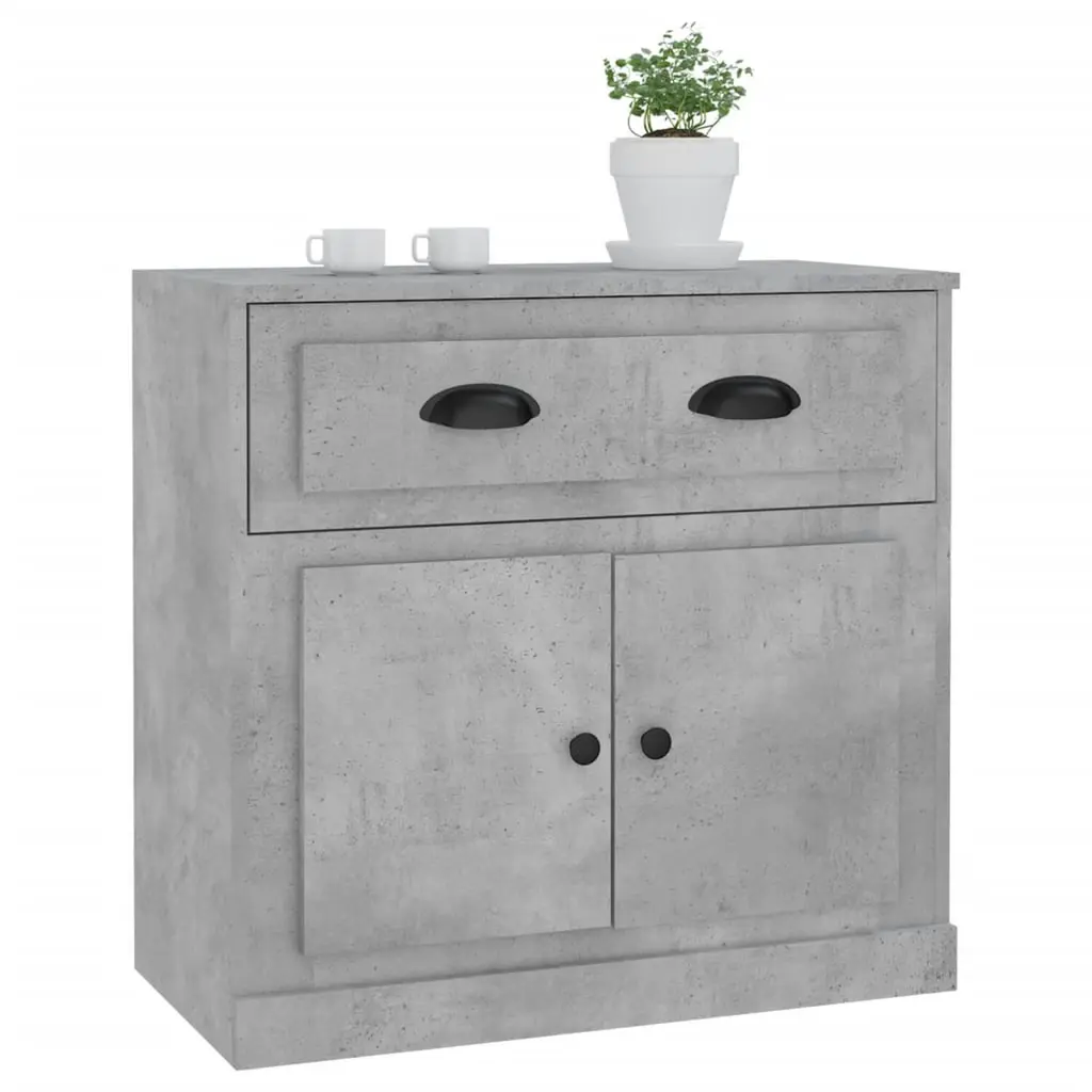 This sideboard cabinet is the perfect mix of style and practicality, making it a great addition to any modern home. Its sleek concrete gray finish fits right in with different interior styles, offering both storage and a decorative touch in your entryway or living room. Sturdy Construction: Made from tough engineered wood, this sideboard's meant to handle daily use while looking good for years. Versatile Use: Great for keeping all sorts of things organized, you can use it to showcase your best bits or for practical storage of daily essentials. Thoughtful Design: With two hinged doors and a spacious drawer, it gives you clever storage solutions, making it easy to grab what you need. Space-Saving: Its dimensions of 27.6 in long and 14.0 in wide fit snugly in smaller spots without skimping on storage. Sleek Finish: The matte texture not only looks trendy but is also easy to clean with just a damp cloth.