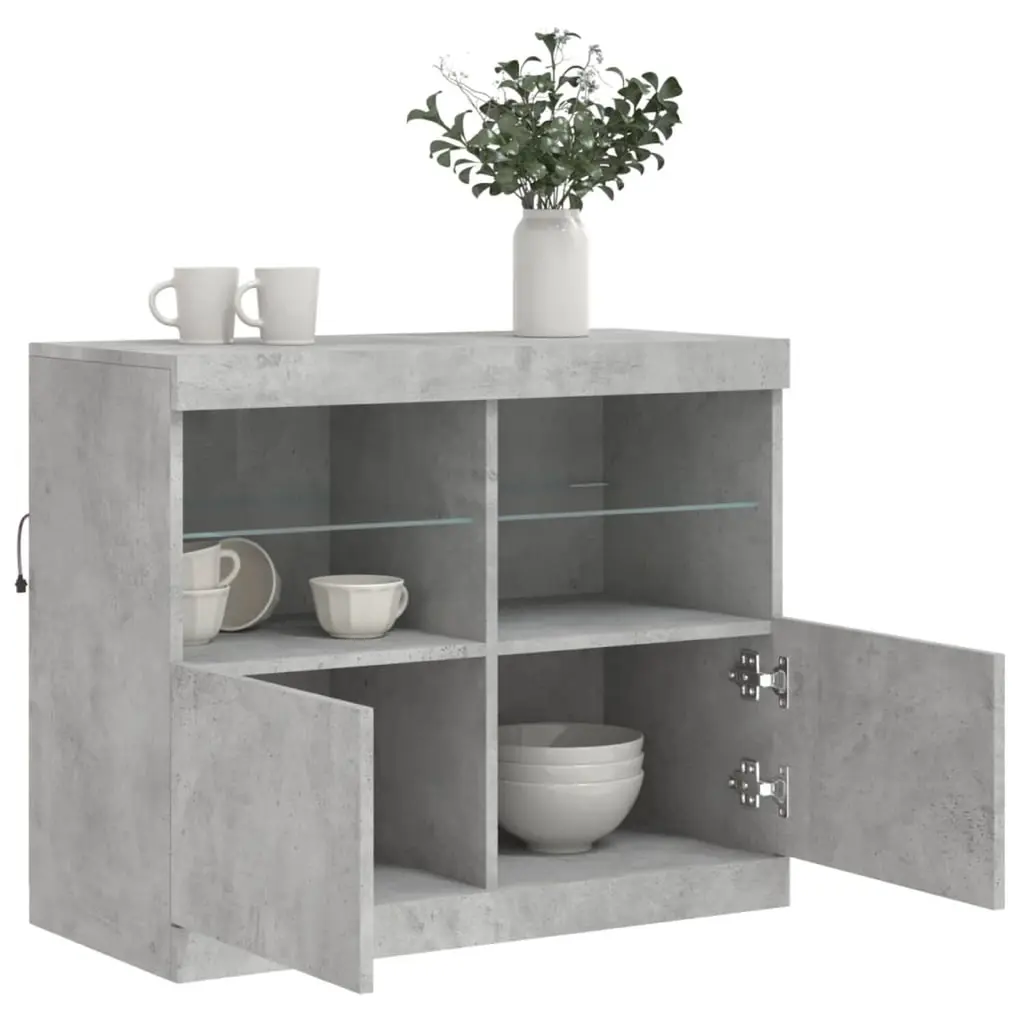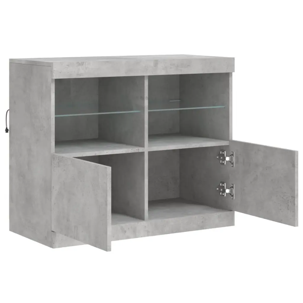 This sideboard, decked out in an eye-catching concrete grey finish, is a stylish option for anyone wanting to spruce up their living area. Its trendy design not only works as a handy storage solution, but also comes with dynamic RGB LED lights that really make the whole look pop, making it ideal for showcasing your decor and keeping your space neat. Ample Storage: The sideboard has three sliding doors that reveal multiple built-in shelves, providing plenty of space for magazines, remote controls, and decorative items. Color Changing LED Lights: Featuring built-in LED strip lights, this sideboard has a lively light display that can change colors, adding a vibrant touch to your room. Modern Aesthetic: Its smooth and matte finish, combined with a contemporary design, creates a visual focal point that fits both modern and traditional decor. Durable Construction: Made from engineered wood and glass, this sideboard offers great durability while staying lightweight, making it easy to move around without sacrificing stability. Versatile Use: Perfect for your living room, hallway, or dining area, this storage solution can tidy up items while boosting the visual appeal of your space.