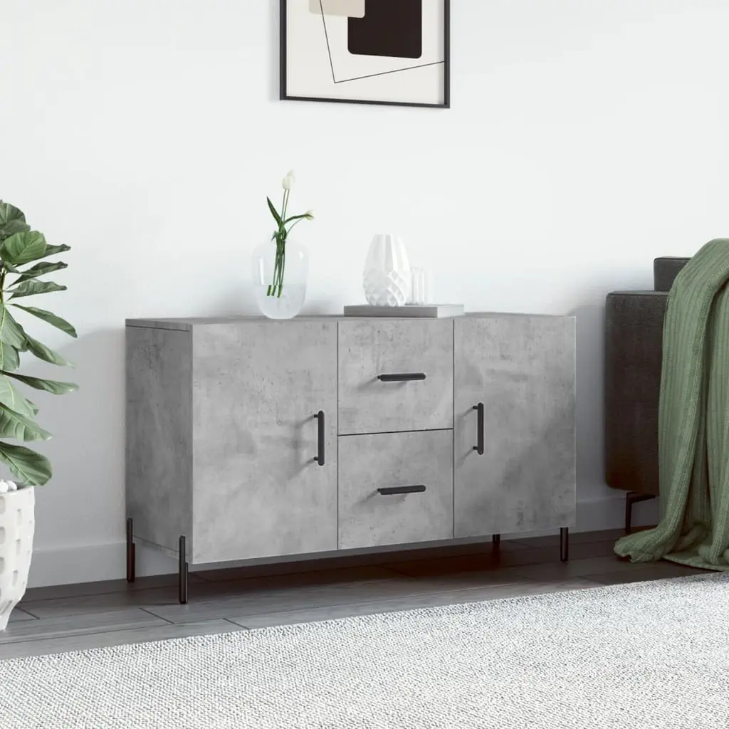 This modern sideboard adds a touch of elegance to any room with its sleek concrete grey finish, perfect for today's design . Its smooth structure not only looks great but is also practical, ideal for organizing living room essentials or as a stylish piece in a hallway or bedroom. Spacious Compartments: With three hinge doors and two drawers, this sideboard makes organizing your belongings simple and easy.Versatile Use: Perfect for your living room, hallway or bedroom, storing everything from books to decor.Sturdy Construction: Made with high-quality engineered wood, this sideboard is built to last through daily use.Sleek Finish: The matte gray finish gives a classy look that suits any modern decor.Simple Assembly: Comes with clear instructions and all the tools needed for easy setup.