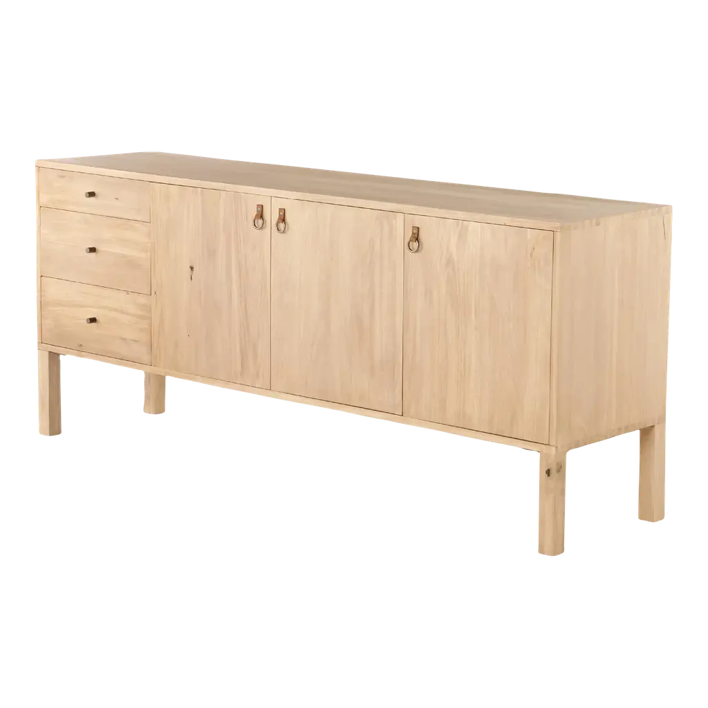 This Grey Solid Wood Pine Sideboard brings a modern vibe to any room, mixing practicality with style. Built from solid pine and engineered wood, this sideboard has plenty of storage space and serves as a beautiful display area, perfect for showcasing decor in dining rooms, living rooms, or hallways. Top Craftsmanship: The sideboard is crafted from high-quality solid pine wood, ensuring it lasts for years. Its matte finish adds a touch of elegance, making it a stunning addition to any room.Spacious Storage: With multiple drawers and doors, this sideboard provides plenty of room to keep items organized. The built-in shelves are perfect for displaying collectibles, books, or kitchen essentials.Modern Style: The clean lines and trendy design of the sideboard match various decor styles, from minimalist to contemporary, giving your home a chic vibe.Flexible Placement: Ideal for dining rooms, living rooms, or hallways, this piece can adapt to different settings. Use it as a buffet for gatherings or as stylish storage anywhere in your home.Easy to Maintain: The sideboard is stain-resistant and requires minimal care. Just dust it regularly with a soft cloth to keep it looking good – avoid harsh cleaners.
