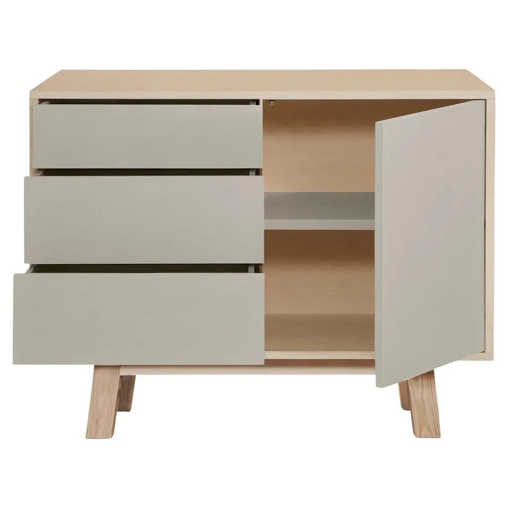 This Industrial Sideboard adds a fantastic touch to your home, blending practicality and style perfectly. Its bold grey finish and strong solid pine wood build make it a standout, while it serves as a great organizational solution. Plenty of Storage: With lots of sections, including 2 drawers and 2 shelves, this sideboard has lots of space for all your things. You can easily store everything from books to decor, keeping your space neat.Sturdy Design: Made from solid pine wood, this sideboard is built to handle daily use while keeping its good looks. The matte finish not only looks classy but also protects against wear.Flexible Style: The industrial vibe of this sideboard fits in with any setting, whether it's modern or vintage. The mix of wood and metal gives your space a unique charm.Easy to Maintain: Wiping it down with a damp cloth is all it takes to clean this sideboard. Just keep it simple, and avoid harsh chemicals to keep it looking fresh.Safe and Stable: Sturdy hairpin legs ensure this sideboard has solid support. It’s designed to be wall-mounted, ensuring safety and no worries about tipping over.