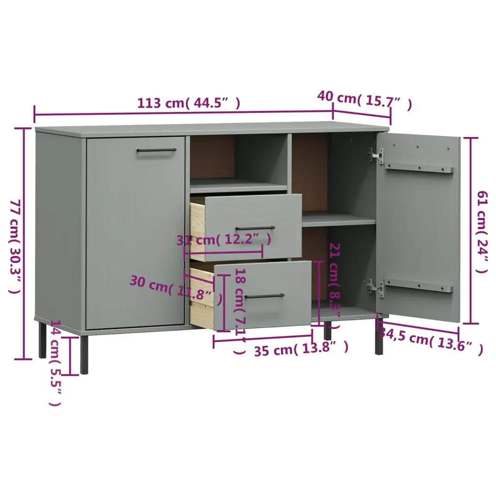 Vidaxl Sideboard Grey Solid Pine Wood, Metal Medium Sideboard