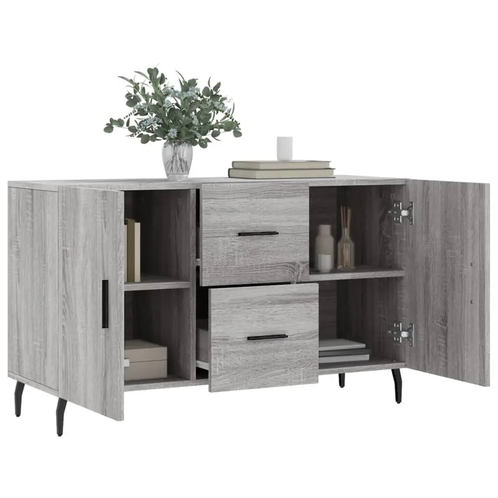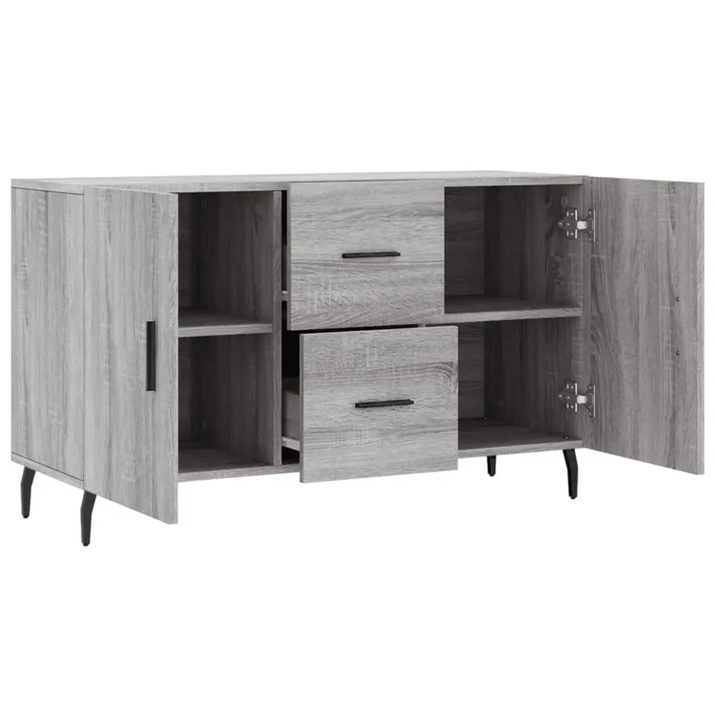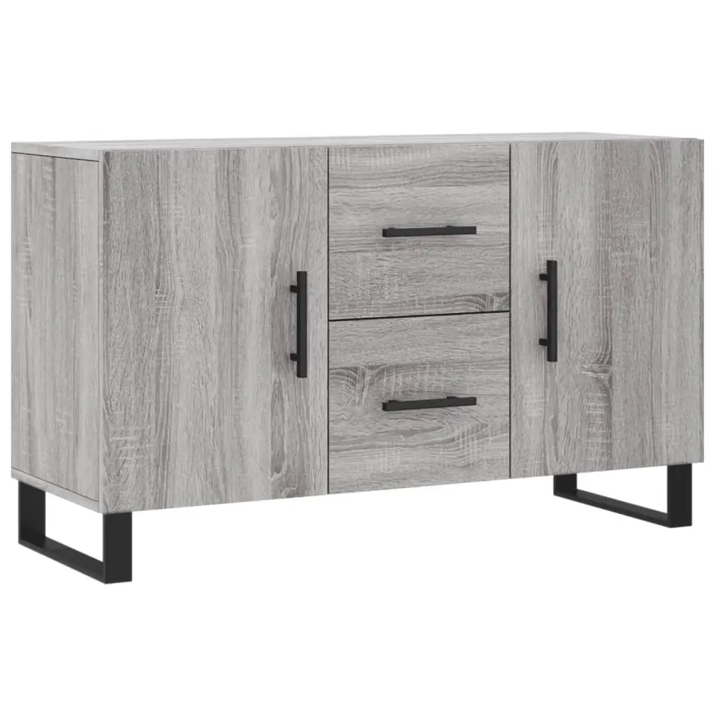 This Grey Sonoma Sideboard is a chic, functional piece made from engineered wood. It perfectly mixes modern style with practicality. The sleek design adds a welcoming touch to any space while offering display and storage versatility along with its attractive look. Modern Aesthetic: Features clean lines with a matte finish, works with various decor styles from minimal to chic.Spacious Storage: Comes with three panel doors and one drawer for loads of organization and display space, keeping things tidy.Durable Material: Built with premium engineered wood for reliability and wear resistance, ensuring it stays lovely for ages.Sturdy Metal Base: Four smooth metal legs provide a solid foundation, enhancing stability while supporting the sideboard's weight for easy access.Functional Dimensions: With a length of 39.4 in, width of 14.2 in, and height of 23.6 in, it's perfect for living rooms and offices where space is key.