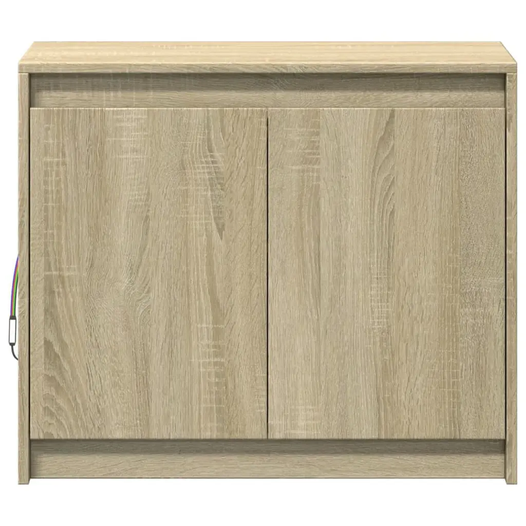 This Sonoma Oak LED Sideboard mixes functionality and style, making it a fab addition to modern living spaces. Measuring 28.3 in long, 13.4 in wide, and 24.0 in high, it effortlessly brings warmth and contemporary flair to your dining room or hallway. Modern Style: This sideboard has a sleek design that suits modern decor, adding elegance to any room while being super useful. LED Strip Lighting: Built-in multicolor LED lights boost the looks and create a lively and inviting atmosphere, perfect for hosting guests or just chilling at home. Spacious Storage: With three compartments, this sideboard gives you loads of room for keeping dishes, linens, or decor items tidy, making it a handy piece for any setting. Easy Care: The engineered wood surface is stylish but also easy to wipe clean with a damp cloth, keeping its good looks without the hassle. Sturdy Design: Engineered wood build gives it stability, supporting up to 154.3 lbs for long-term use and serving your storage needs well.