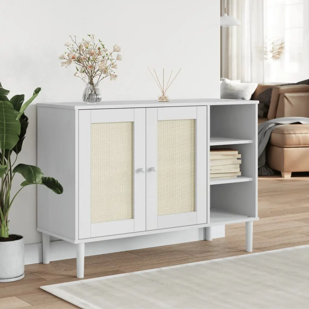 Vidaxl Sideboard White Solid Pine Wood, Engineered Wood, Poly Rattan