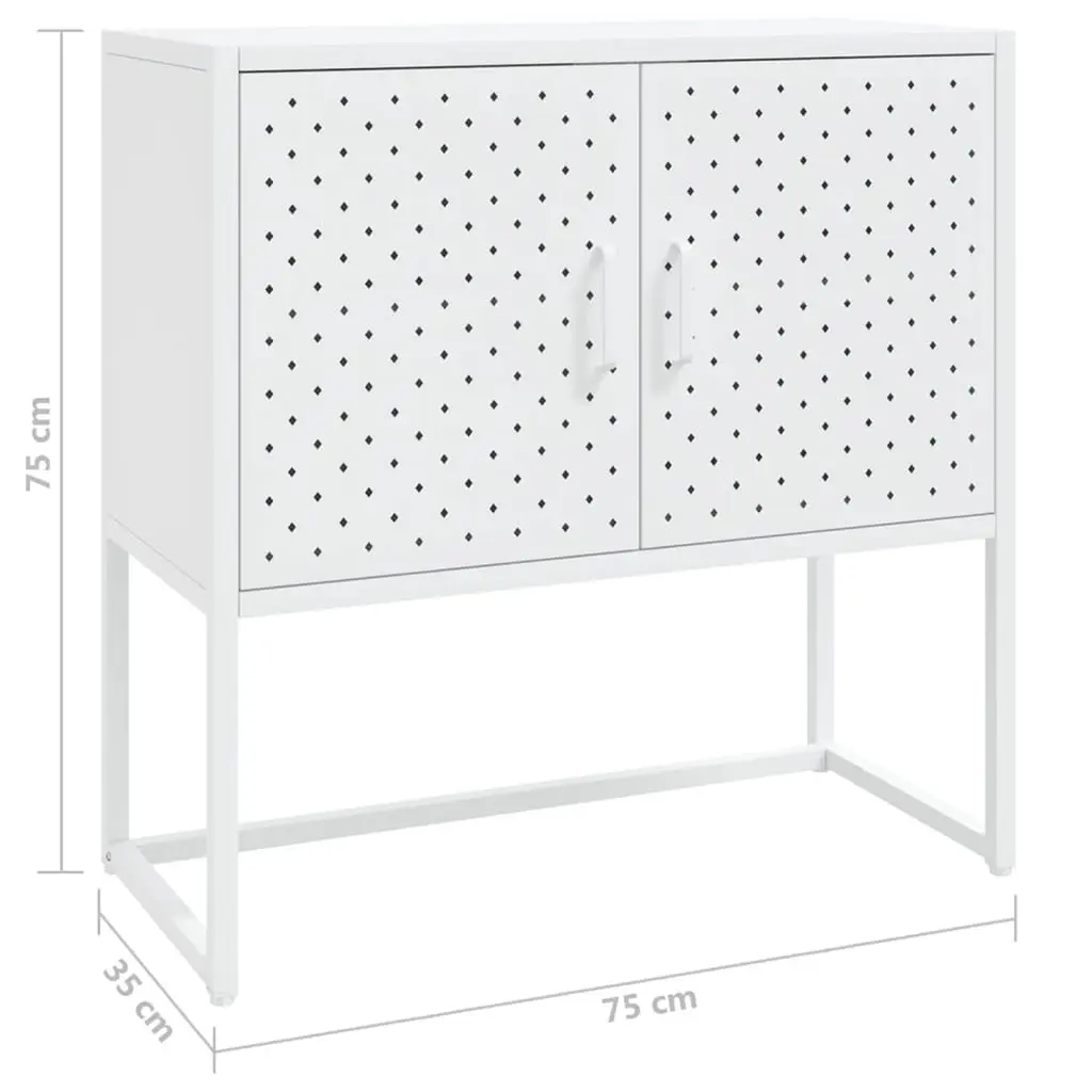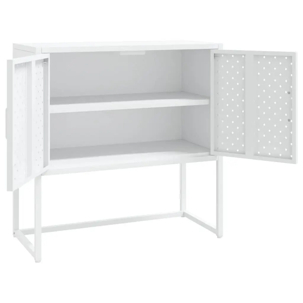 This modern sideboard is all about being both functional and stylish. With its sleek white steel build, it's a perfect fit for living and dining spaces. The clean lines and smooth finish give it a classy vibe, making it a great addition to contemporary or minimalist homes, while also being a handy solution for keeping and displaying everything from dishes to decor or plants. Ample Storage: The sideboard's single shelf offers a generous space, perfect for keeping dining essentials or displaying decorative items. Sturdy Construction: Made from tough powder-coated steel, it holds up to 132 pounds securely and looks stylish at the same time. Sleek Design: The minimalist white finish goes well with any decor, making it a great choice for modern homes and adding a touch of openness. Easy to Clean: Its smooth surface makes upkeep super easy; just wipe it down with a damp cloth. Adjustable Levelers: Comes with levelers that keep the sideboard steady on uneven floors, boosting usability without sacrificing style.