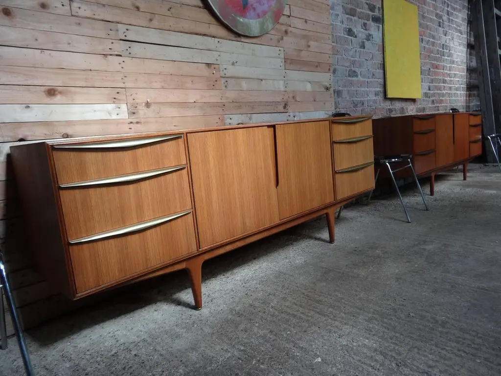 Rare Vintage 1960s McIntosh Sideboard by Tom Robertson – A Collector's GemAn exceptional opportunity to own one of the most sought-after vintage pieces by Scottish designer Tom Robertson for McIntosh — this stunning 1960s sideboard is a true mid-century modern classic.Crafted in beautifully aged teak, this piece features:Three drawers with elegant brass pull handlesA spacious cupboard sectionA cleverly designed drinks cabinet with a functional pull-out shelf – perfect for entertainingThis model is extremely rare — since starting my business, I’ve only come across two, and I’m lucky enough to have both available right now. They are identical in design, with one being just slightly darker in tone than the other — the difference is minimal and only noticeable in certain lighting.Both are in very good original condition, showing only light signs of age and use — a testament to their quality and care over the decades.Dimensions:Width: 201 cmHeight: 75 cmDepth: 48 cmA true statement piece that seamlessly combines timeless mid-century design with everyday practicality.These don’t come up often — feel free to reach out with any questions or to let me know which version you prefer. Additional photos available on request.
