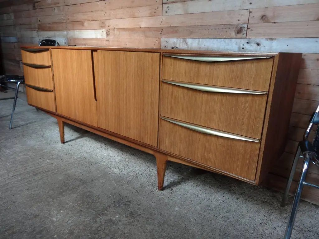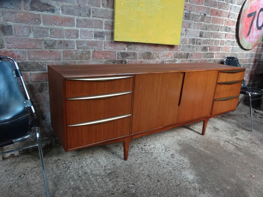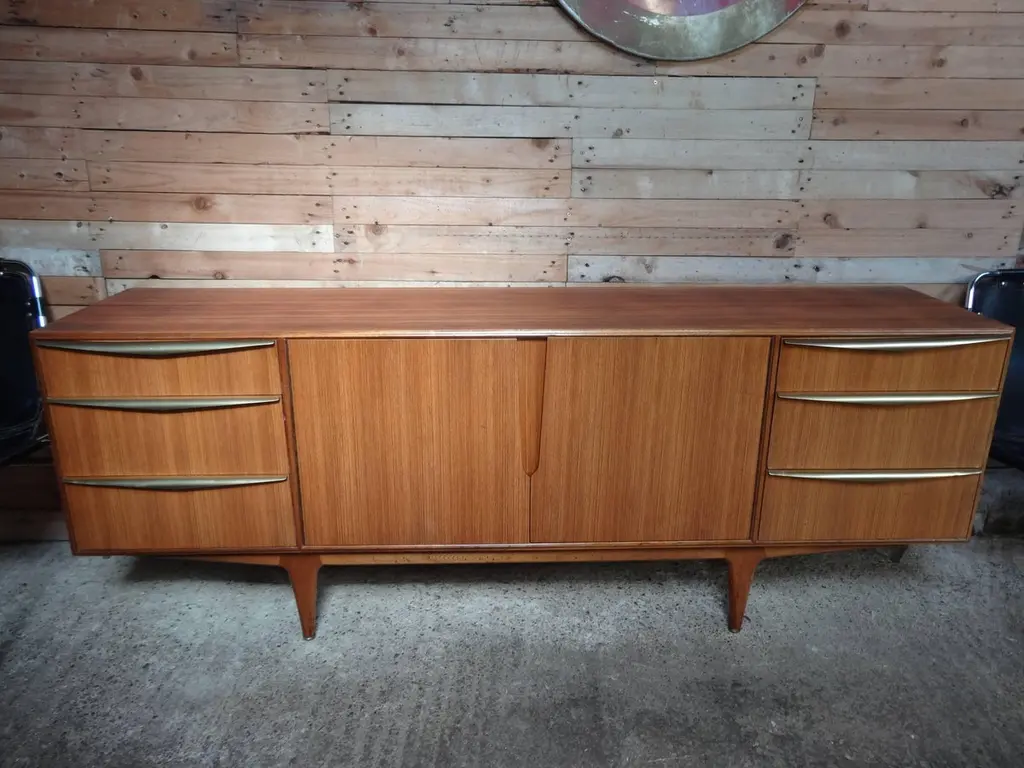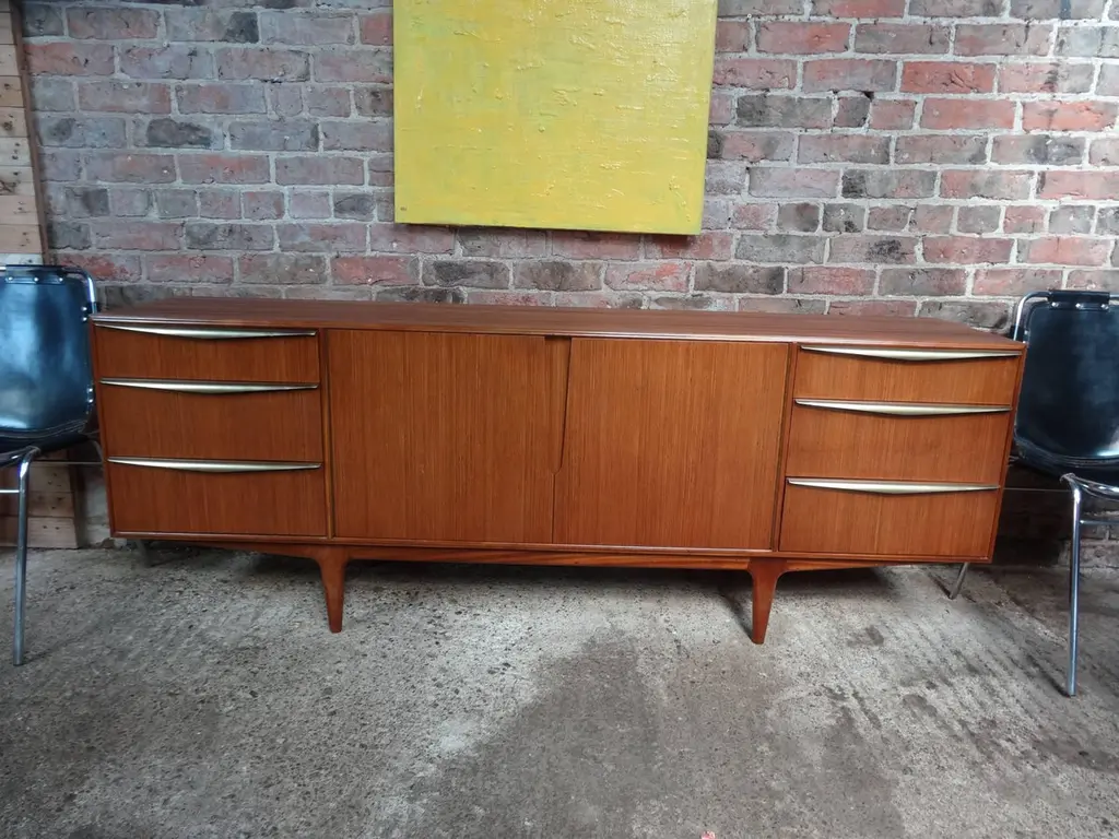Vintage Retro Teak Brass Handles Sideboard By Tom Robertson For Mcintosh, 1960s