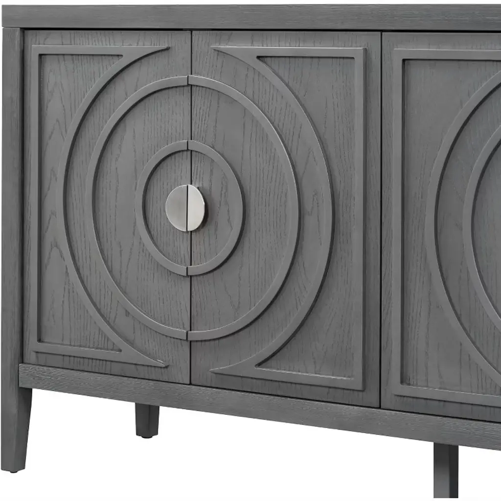 The Sideboard That Brings Function and Charm to Your Home Imagine your dining room transformed - where stacks of dishes find their perfect home behind those beautifully curved cabinet doors, and your favorite serving pieces are always within easy reach. This isn't just storage; it's a conversation piece that tells a story of craftsmanship with every intentionally distressed detail. Built from durable rubber wood and acacia with reinforced MDF, this sideboard stands up to daily use while developing a richer character over time. The circular metal handles aren't just pretty - they turn smoothly under your fingers as you reach for holiday china or everyday bowls. Choose antique blue for a pop of personality, soft gray for subtle blending, or crisp white to lighten your space - each finish applied by hand so no two pieces are exactly alike. What makes it special? Four gracefully arched doors that add dimension to flat walls, creating visual interest whether closed or open. Inside, adjustable shelves accommodate everything from tall vases to your mixer collection. The sturdy construction means no worrying about sagging when fully loaded - this piece grows with your family's needs. Assembly is refreshingly simple - about an hour with the clearly labeled parts, and you're set for years of use. Place it in your entryway to catch keys and mail, in the dining room as your go-to serving station, or in the living room as a stylish media console. Finally, storage that works as beautifully as it looks - keeping your home organized without sacrificing an ounce of style.