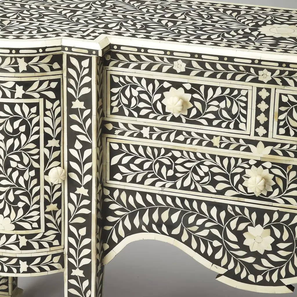 Vivianna Modern Classic Black Cream Bone Inlay Sideboard