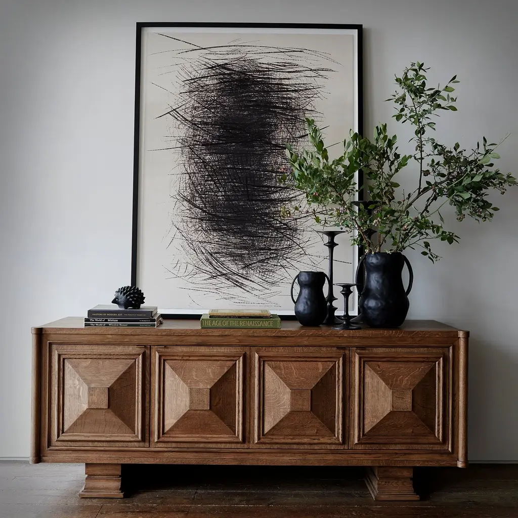 Step into the allure of 1930s French sophistication with our exquisitely hand-crafted Voltaire sideboard, a homage to the Post-Deco era. Meticulously designed, this sideboard captures the essence of that design period through its sleek lines, luxurious materials, and intricate geometric detailing. Elevate your space with a touch of vintage elegance, seamlessly blending the past with the present in a statement piece that resonates with timeless beauty.