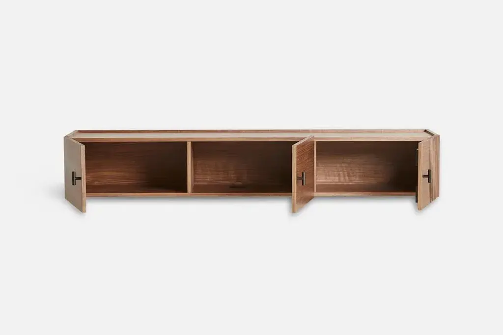 Walnut array low sideboard 150 by says who materials: walnut, metal dimensions: d 37 x w 150 x h 25 cm also available in different colours and materials. The founders, mia and torben koed, decided to put their 30 years of experience into a new project. It was time for a change and a new challenge. The challenge was to build an ambitious design brand from the ground up with high-quality materials and great attention to the little details. With a drive to create new originals, the woud collection is founded upon the idea to look ahead instead of looking back and share the love for honest design. Therefore, we are eager to discover and develop new ideas whether it being in form, function or choice of material. Says who is a danish design studio founded by kasper meldgaard and nikolaj duve. Rooted in the traditions of scandinavian design, says who combines nordic minimalism with functionality to create furniture and design solutions. Sharing their love for simplicity, the duo has collaborated with various design brands. The studio is part of the movement of new scandinavian design with respect for the design heritage while reinventing it to fit the present time and environment. With curiosity and passion for discovering new ways forward, they create designs with clean lines and geometrical shapes. This dedication recurs in the barn cabinet and their most recent design to the woud collection, the array series, which beautifully communicates the characteristic lines found in modern architecture.