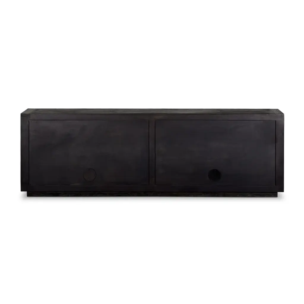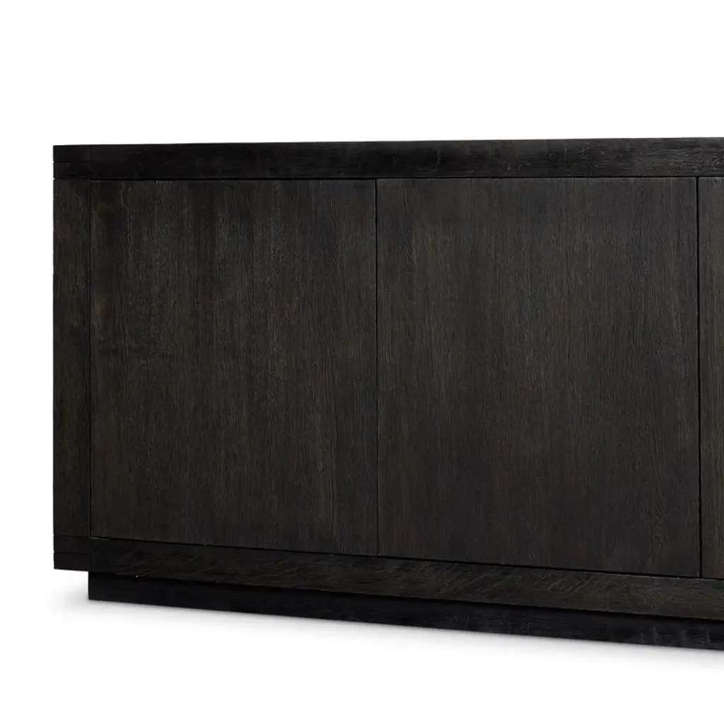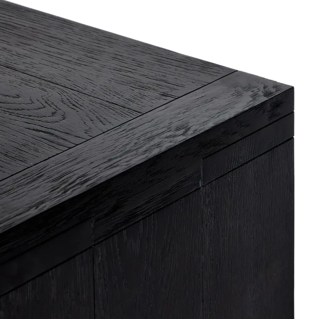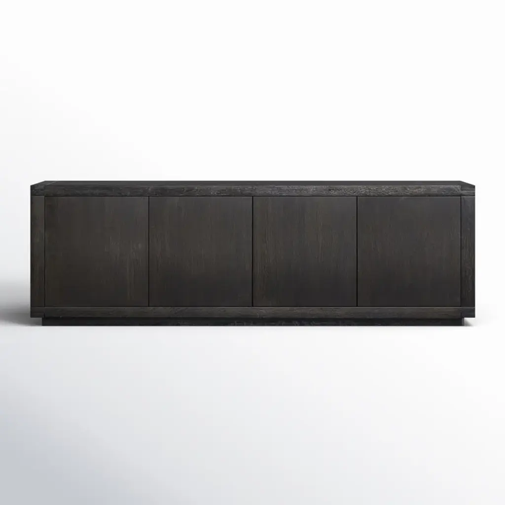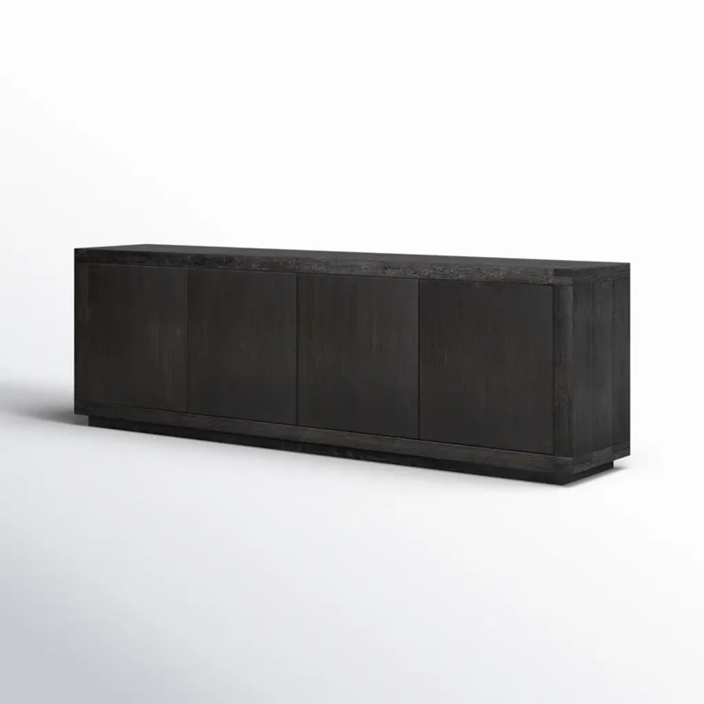 Worn oak shapes a streamlined box-style sideboard, with lap joint corners for a detail-driven touch.