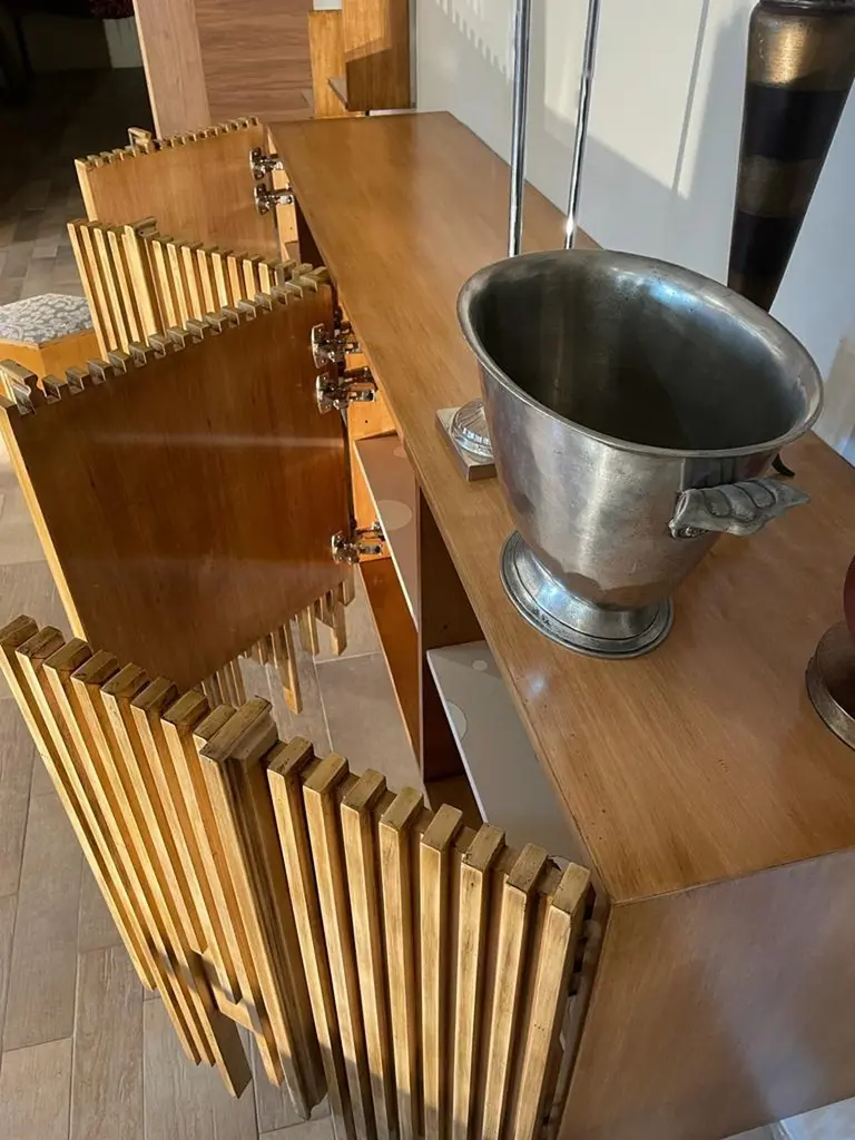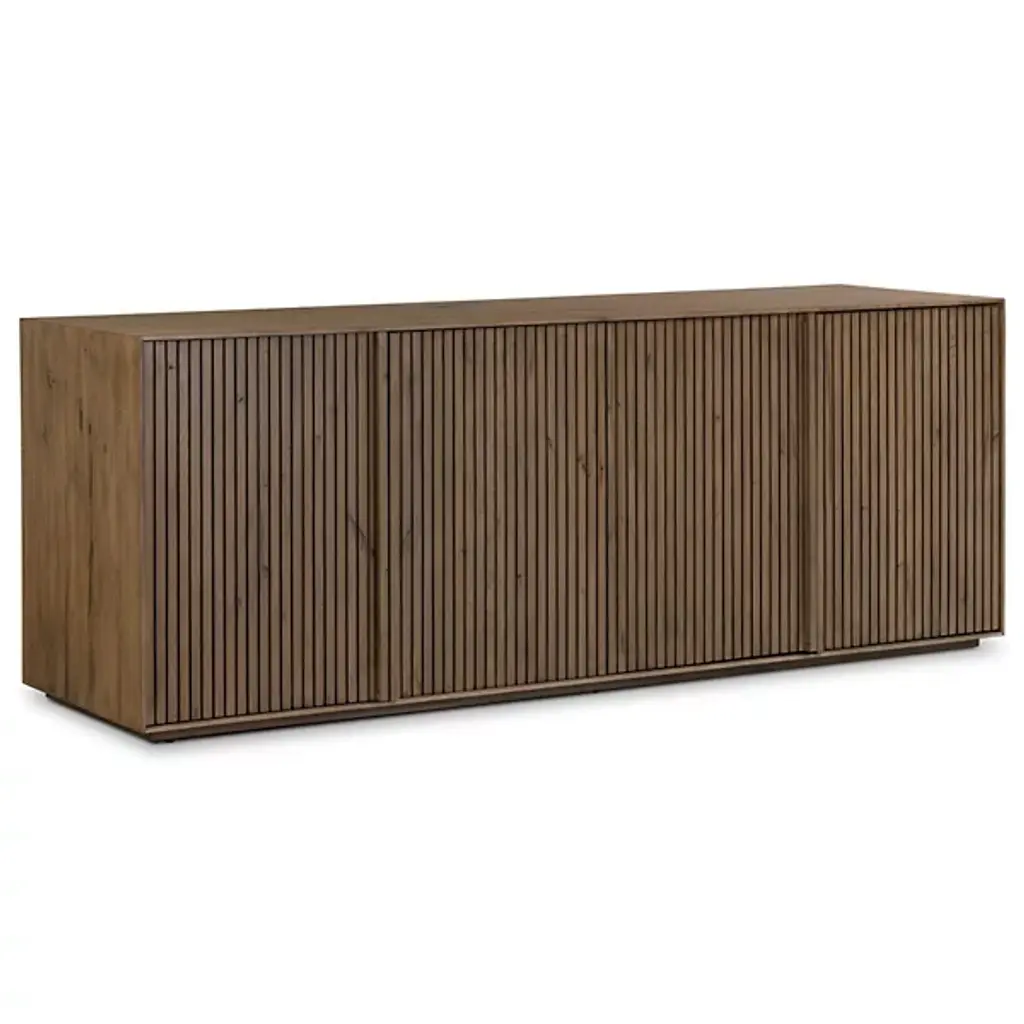 Wave Sideboard by Lola GlamourDimensions: D 45 x W 200 x H 57/80 cmMaterials: Wood.Suspended sideboard that can be crossed by a series of parallel wooden slats. We tried to capture that exact moment when, looking through the window glass, you can see the movement of countless drops of water, suspended in time and space, paralyzed only by an almost photographic memory.Four doors with beautiful interior shelves camouflaged between their slats.We are Félix and Désirée Ramos, brothers and product designers of our brand, Lola Glamour.We are interested in the singular, the different, the beauty, and the balance of color and materials. We have the ability to observe and the ability to translate any beautiful object into a piece of furniture.We are proud of having created our own style, a way of understanding design, which allows us to tell stories and connect with the souls of people and spaces.Lola Glamor is a Spanish company from Soria, which has designed and manufactured unique furniture in noble woods, with artisanal construction and extraordinary finishes since 1995. Artistic furniture that is customized in size and finish according to the client's needs.We offer original furnishing solutions for professionals and individuals from any country in the world, mixing materials, volumes, motifs, and colors that achieve their own style.We are, above all, the sum of a team of people who contribute their dedication and commitment to a unique level of demand, detail, and quality.