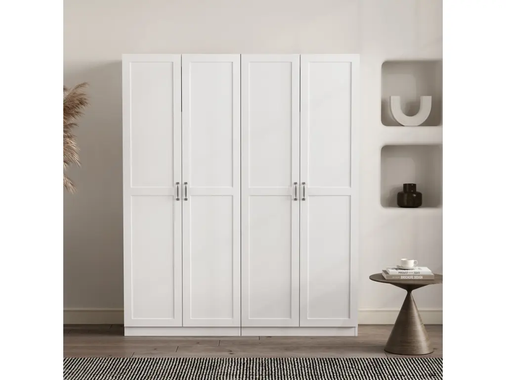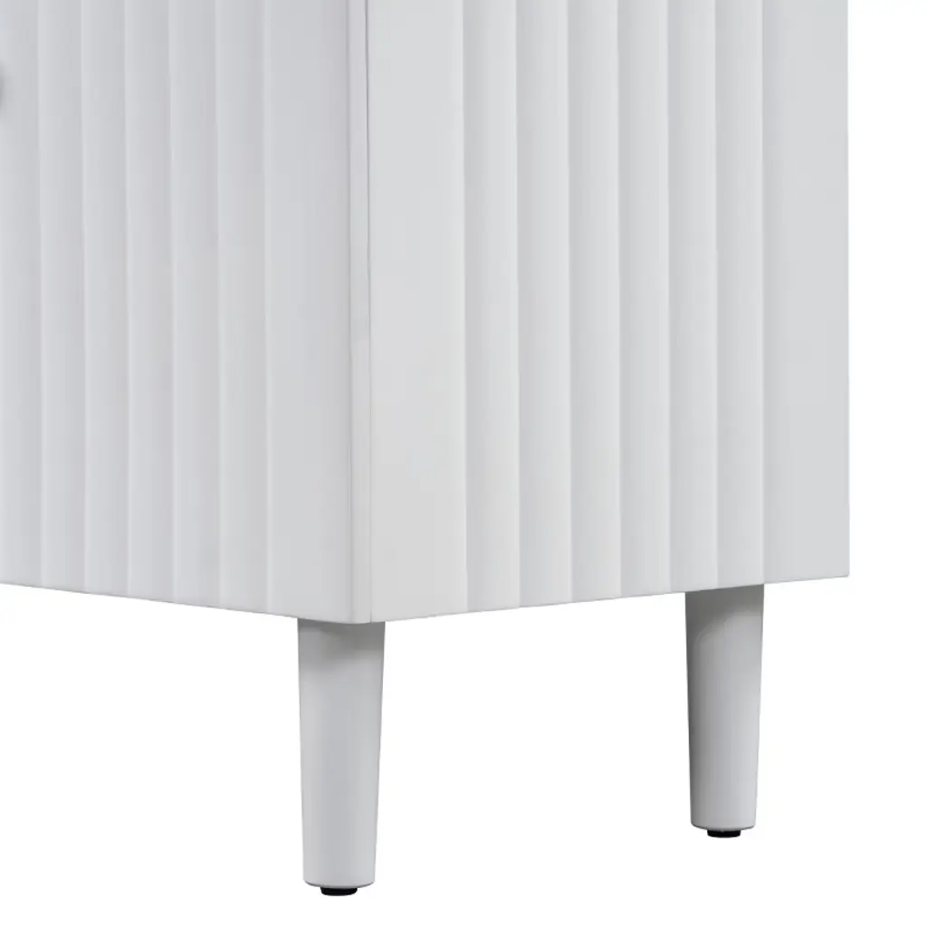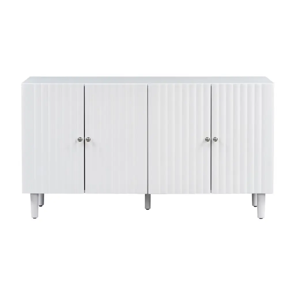 White Elegant Wooden Sideboard Cabinet,four-door Storage Cabinet With Wavy Pattern Doors,cylindrical Legs And Metal Handle,adjustable Shelf-cuddlewood