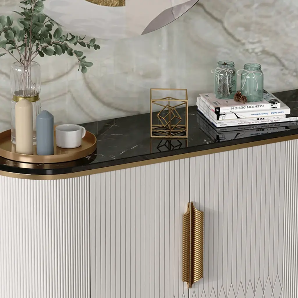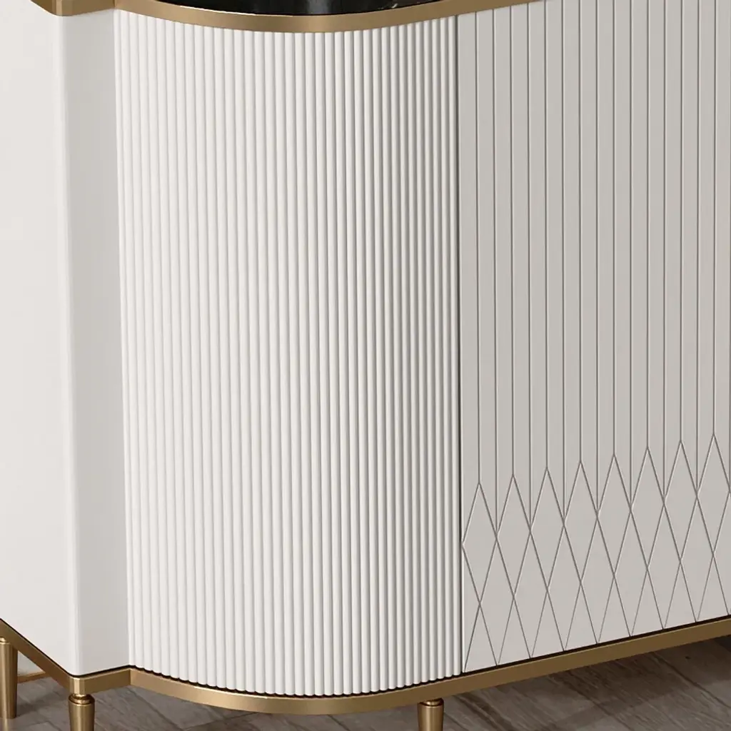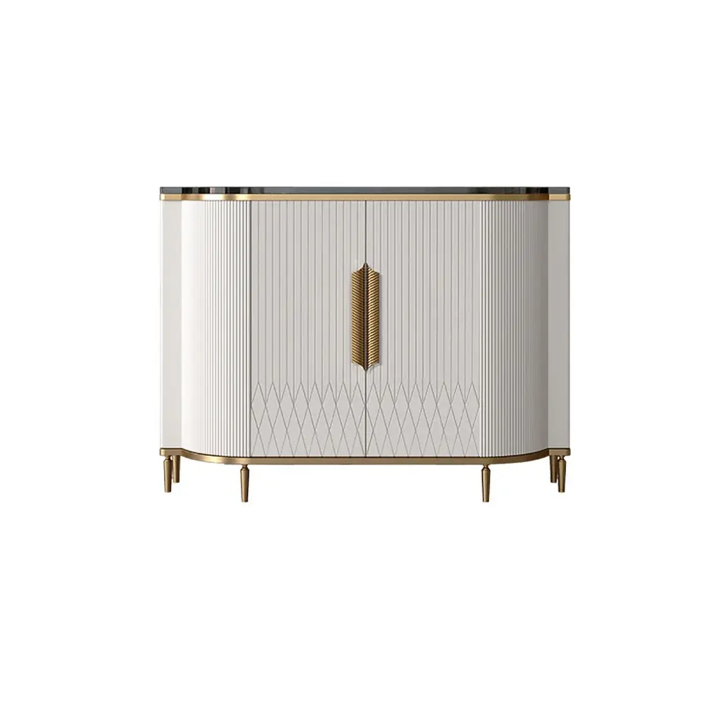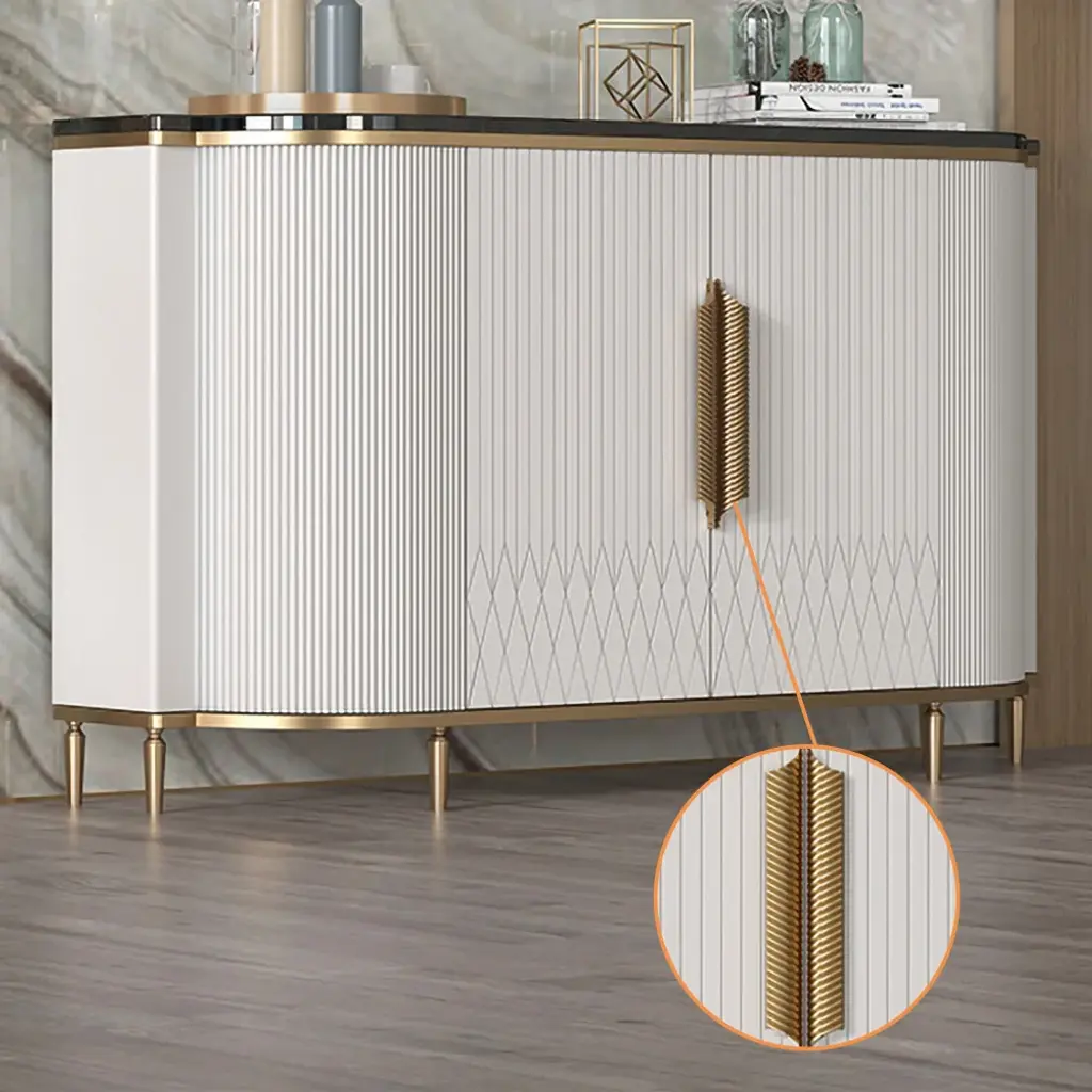 White Luxury 2-Door Sideboard Buffet Sintered Stone Top Modern Sideboard Cabinet In Gold