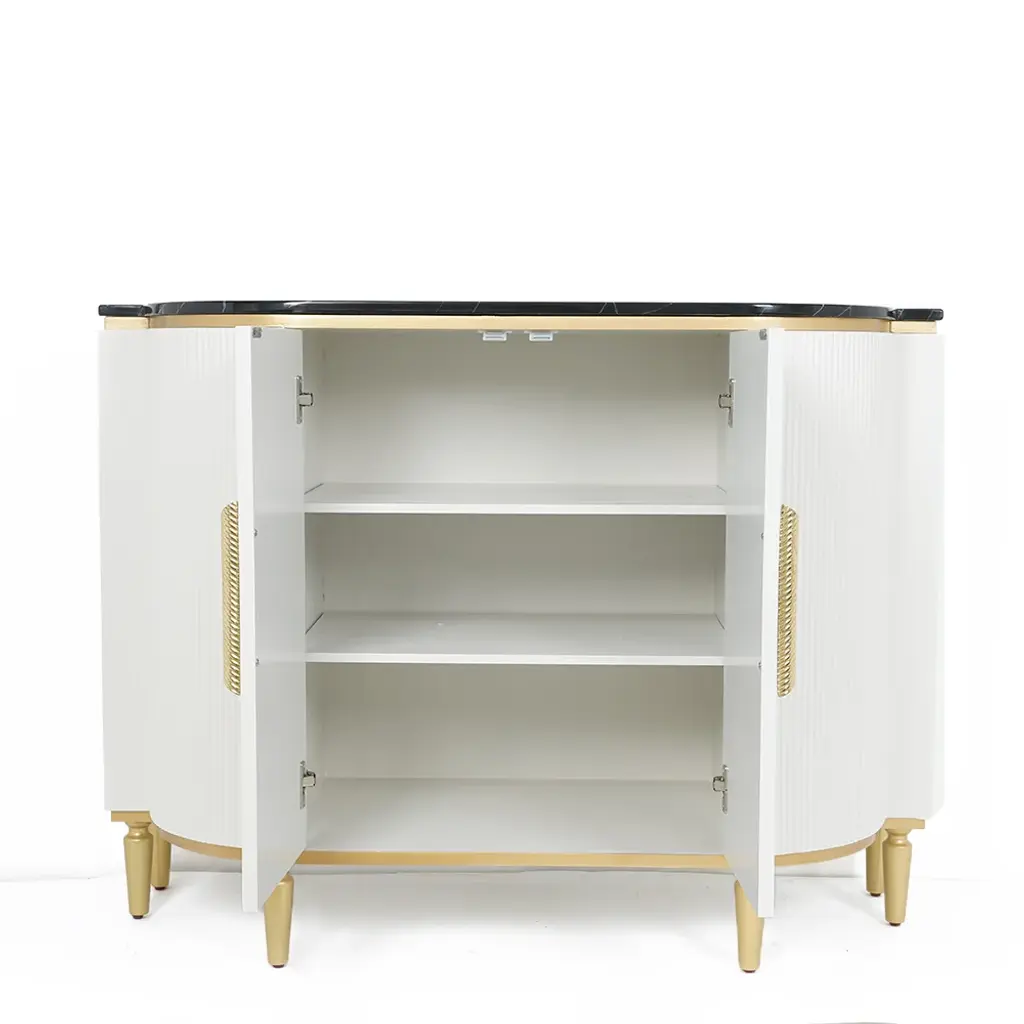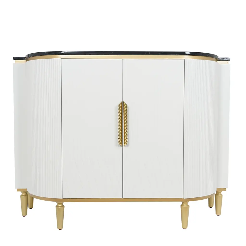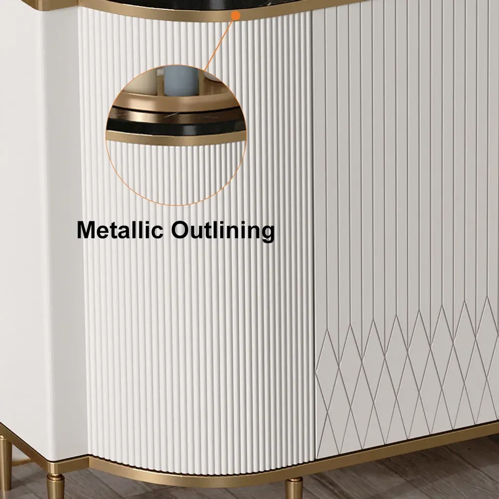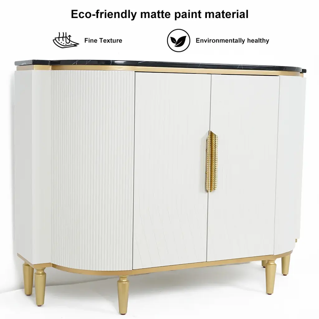 White Luxury 2-Door Sideboard Buffet Sintered Stone Top Modern Sideboard Cabinet In Gold