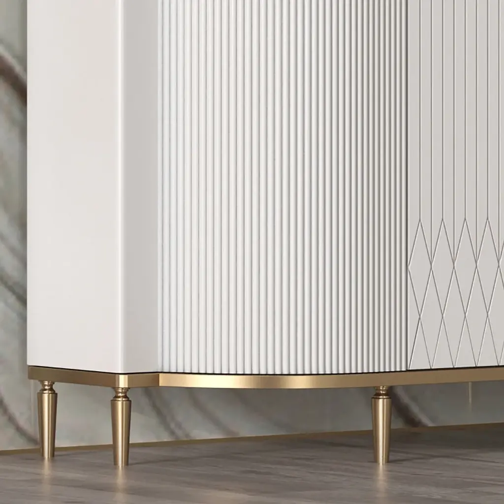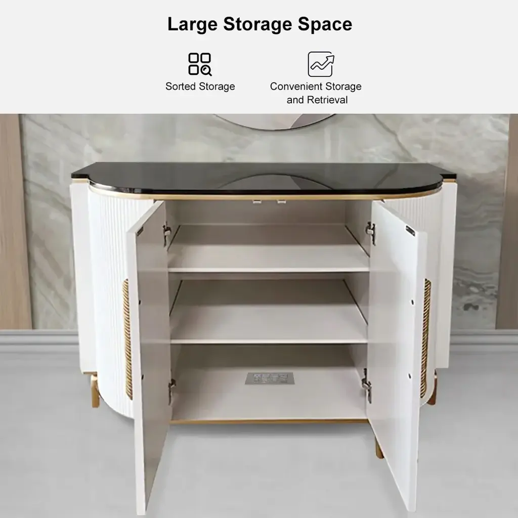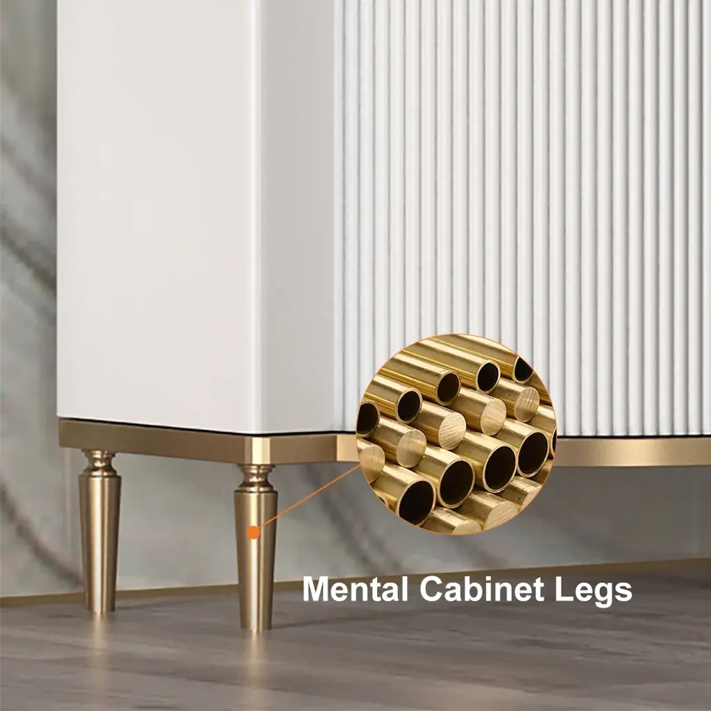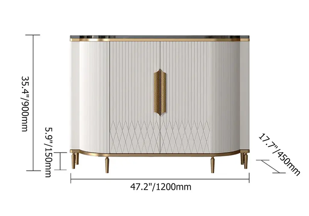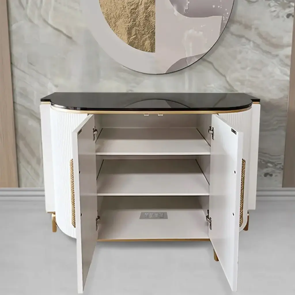 White Luxury 2-Door Sideboard Buffet Sintered Stone Top Modern Sideboard Cabinet In Gold