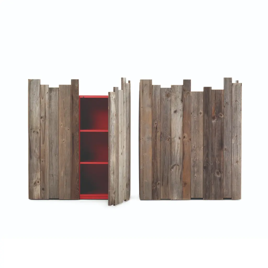 The Wooden Plank Rustic Sideboard from Mogg Zio Tom is a minimalist yet visually striking piece that will add a touch of luxury to your home. Made from reclaimed antique larch wood, each door and side features unique irregularities that add to its charm. With four doors and two interior shelves, this sideboard offers ample storage space for all your belongings. The internal structure and top are lacquered in the color of your choice, making this a truly customizable and elegant piece of furniture.
