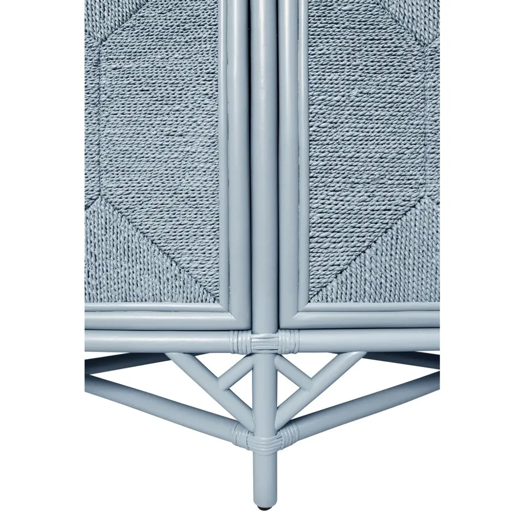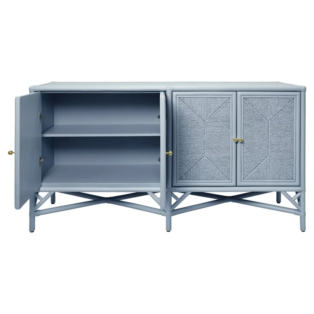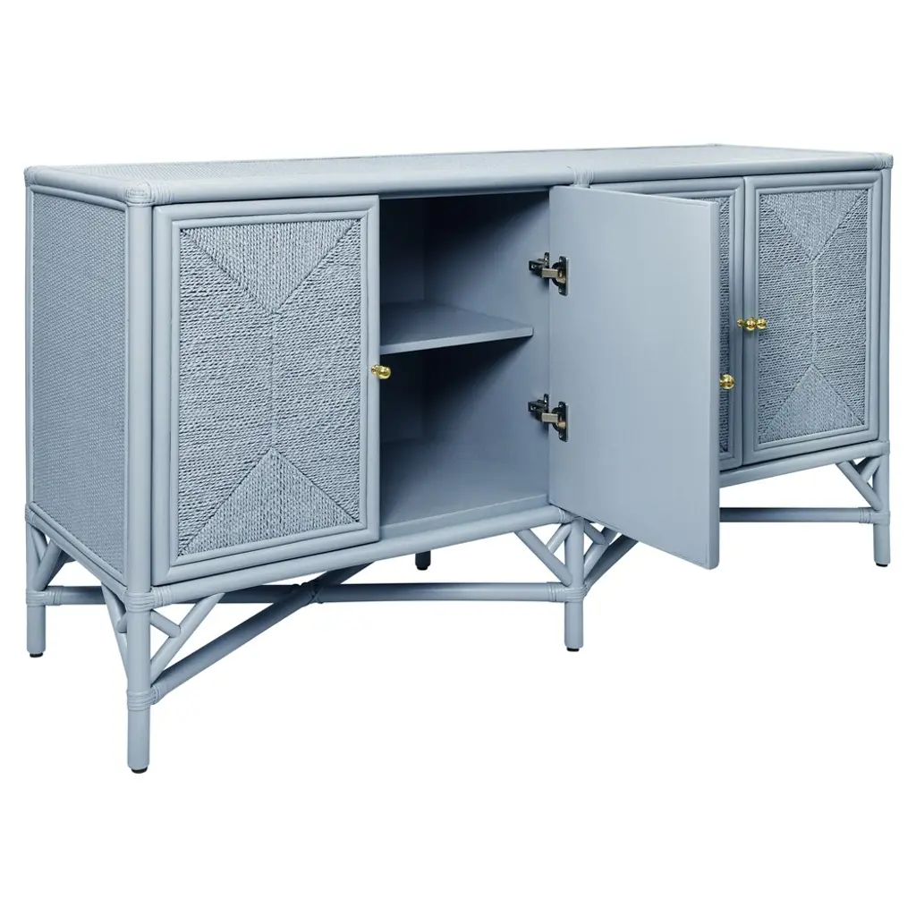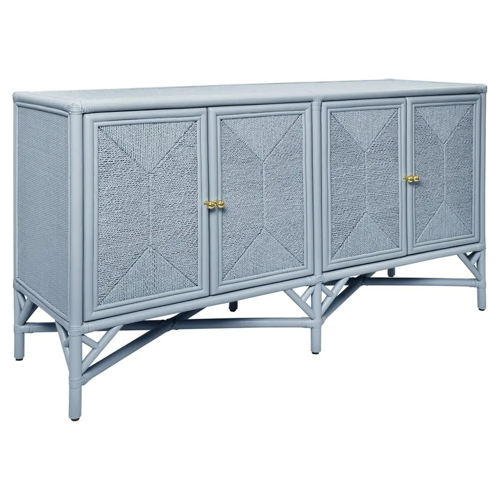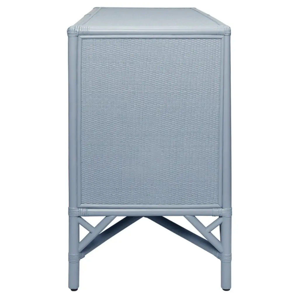 Worlds Away Eleanor Coastal Beach Light Blue Rattan Woven Rope Sideboard