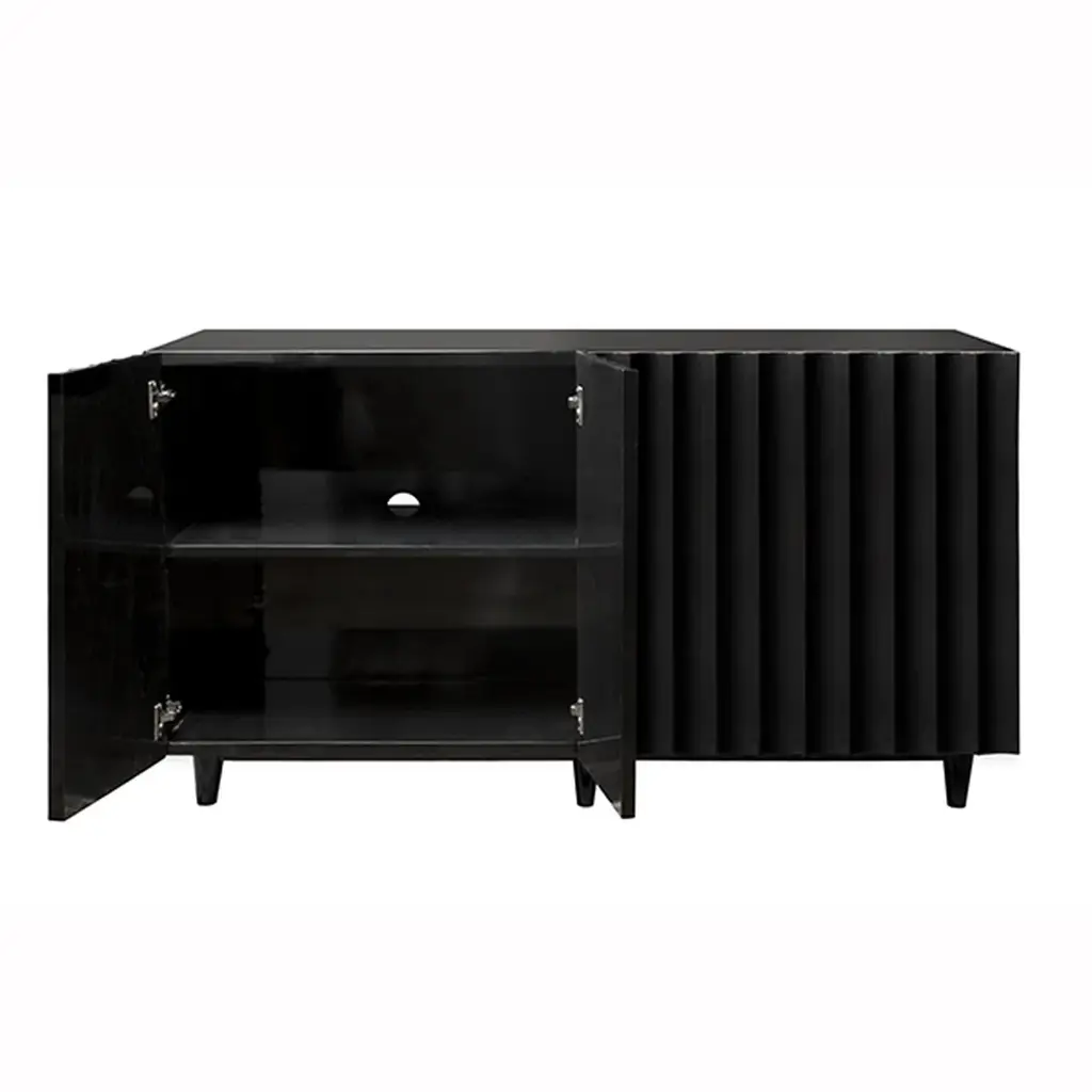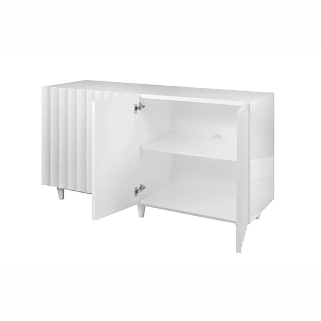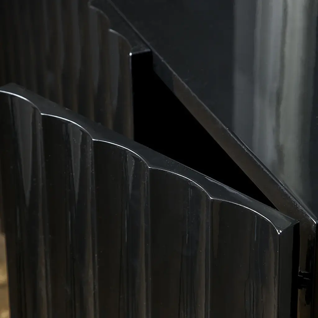 Make a bold yet minimalist statement with the Worlds Away Odette Cabinet. Its unique, flowing scalloped design conceals four cabinet doors, revealing a wealth of storage space within. This piece is as captivating as it is practical, offering both beauty and functionality.