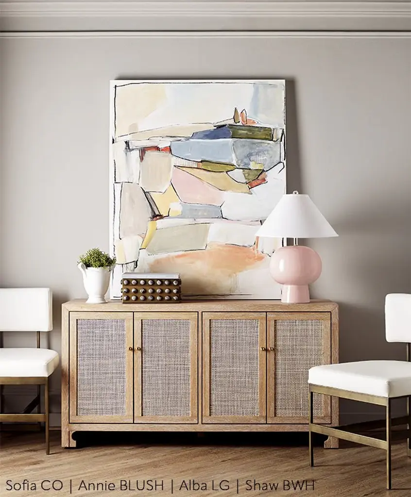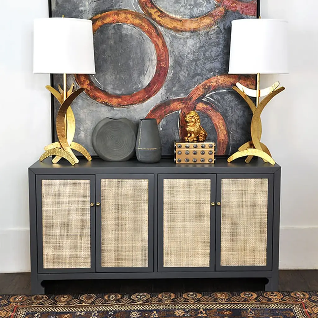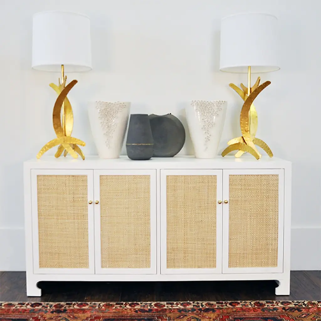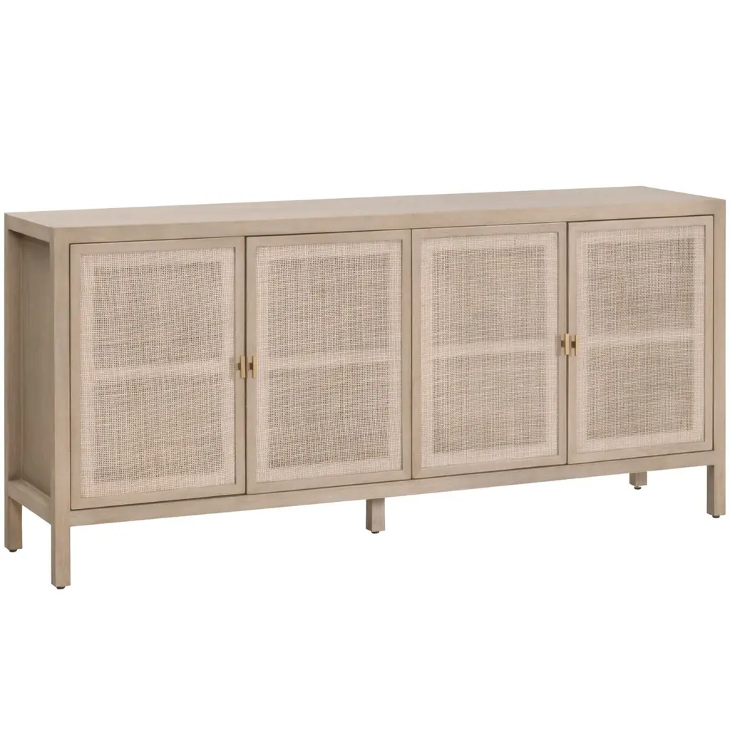 British West Indies style with a modern flair, this chic cabinet showcases natural, hand-woven caning on a stunning, natural cerused oak, white or grey base. Accented with brass hardware, the Sofia offers an abundance of storage and makes a stylish statement wherever used!