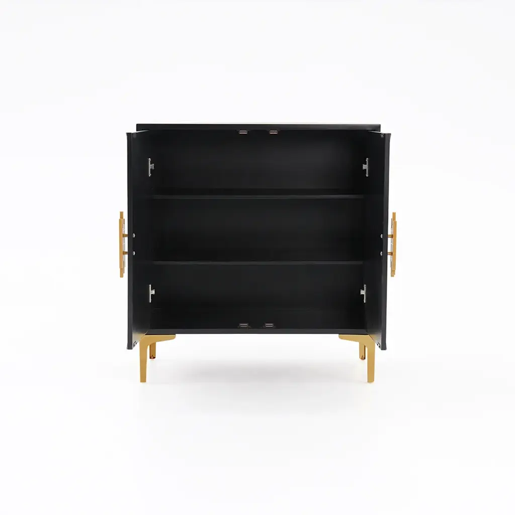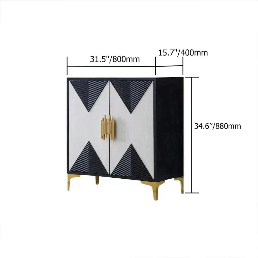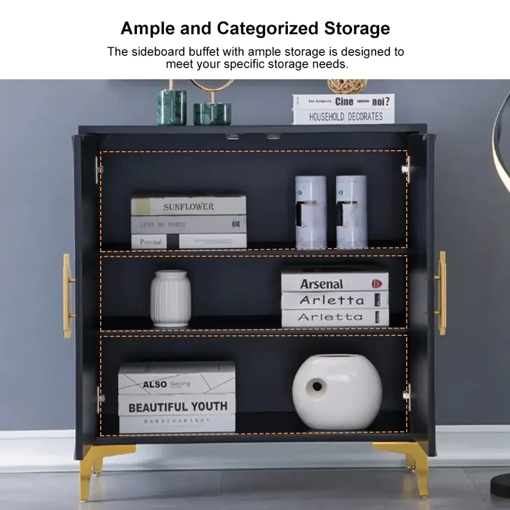 Wovuna Black & White Sideboard Buffet 2 Doors & 3 Shelves Accent Cabinet Gold In Small