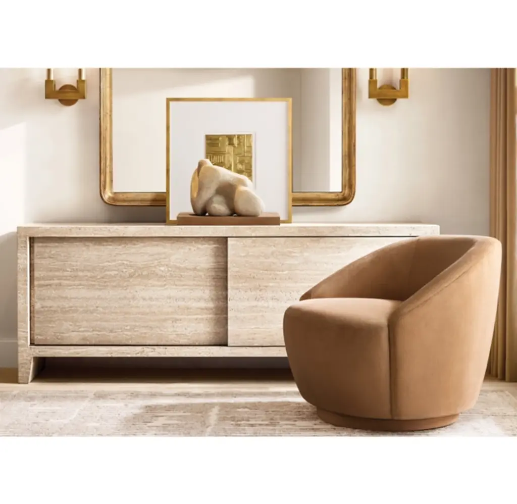 Designed by modern visionary John Birch, our collection is a celebration of travertine, sourced from esteemed quarries near Rome. Skilled artisans cut the stone parallel to the bedrock, exposing its distinct veining and range of complementary hues. Inspired by elements of African tribal design, the silhouettes are imbued with a sense of understated, quiet luxury. SHOP THE ENTIRE COLLECTION