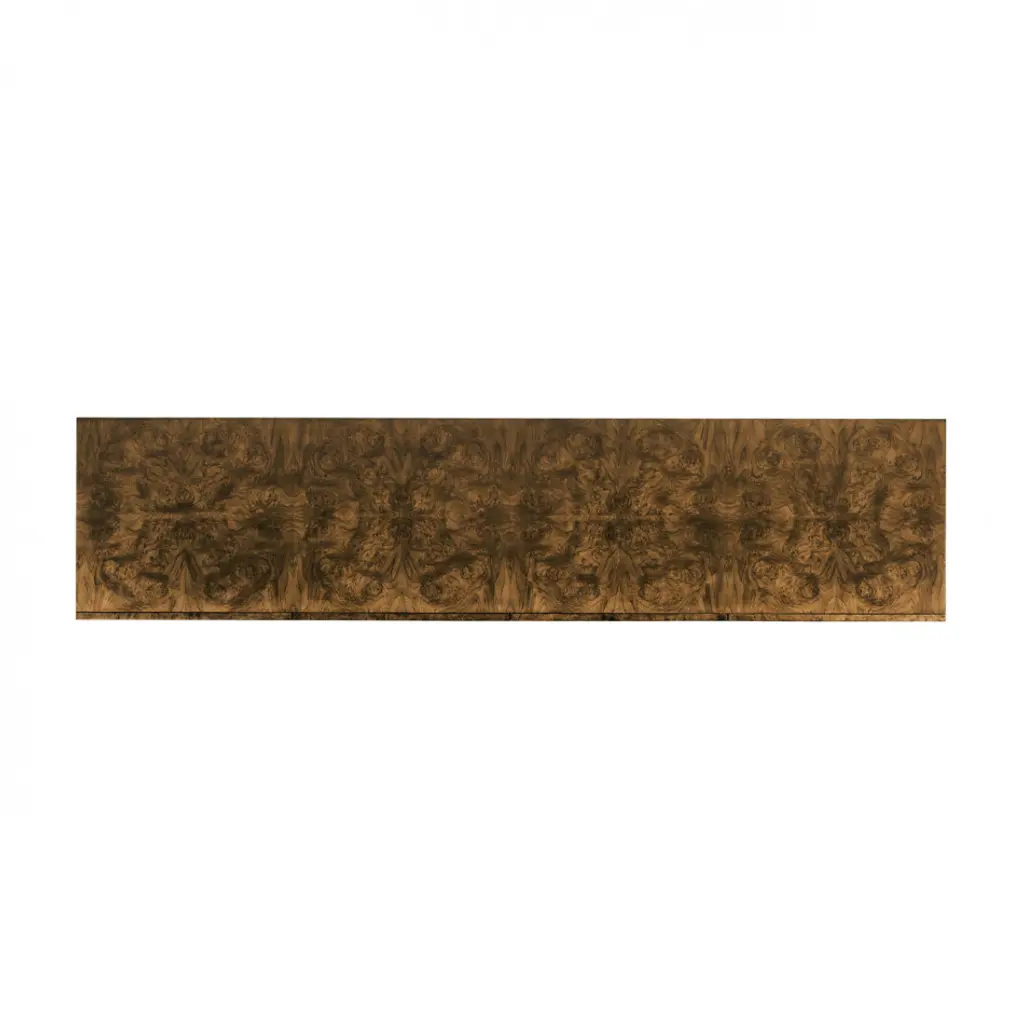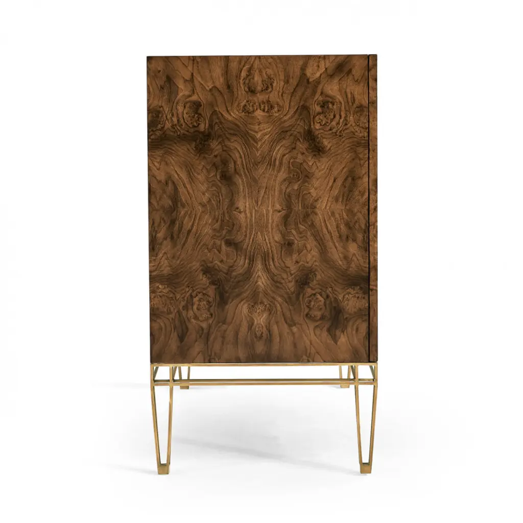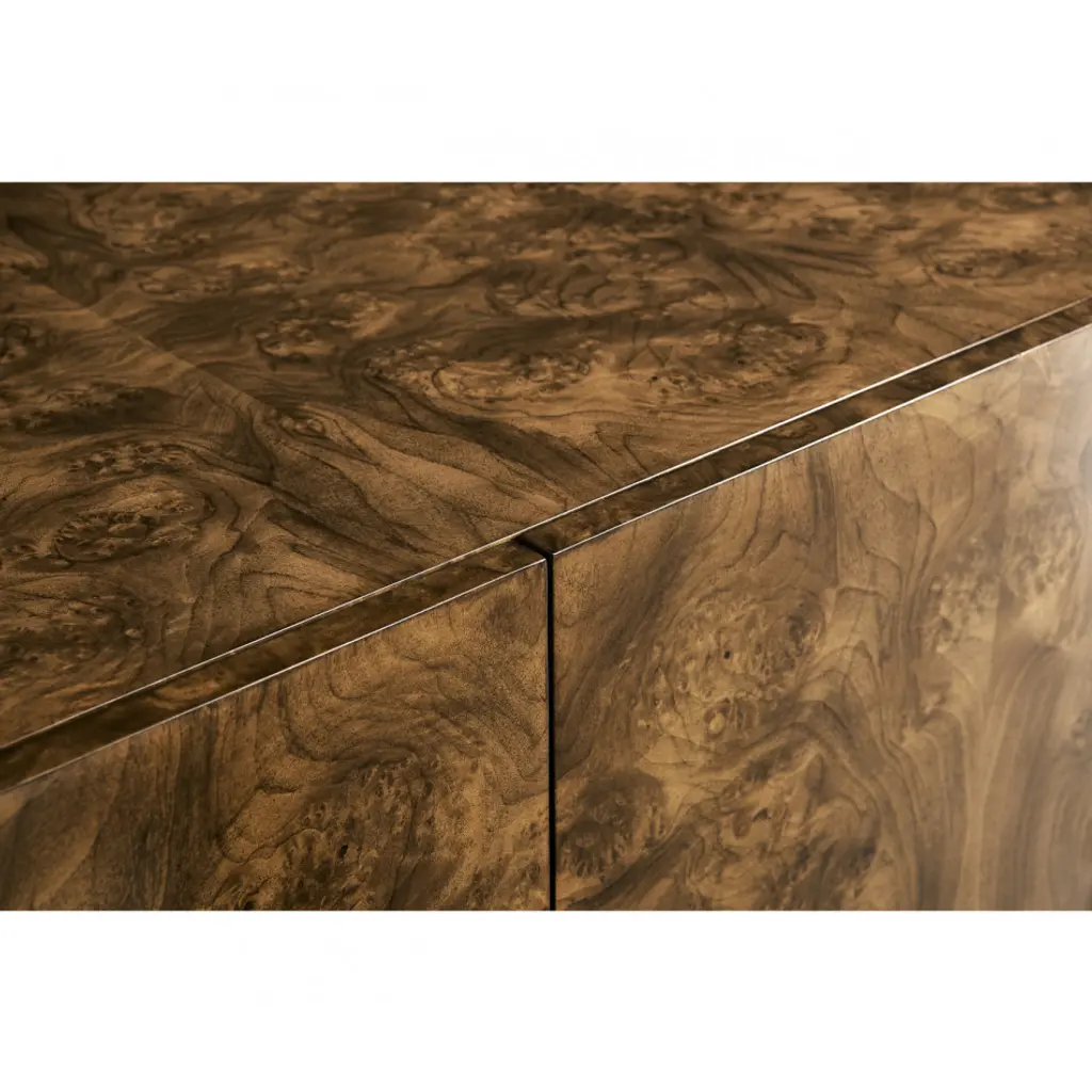 Walnut burl sidebaord with exoskeleton wire base finished in bronze.