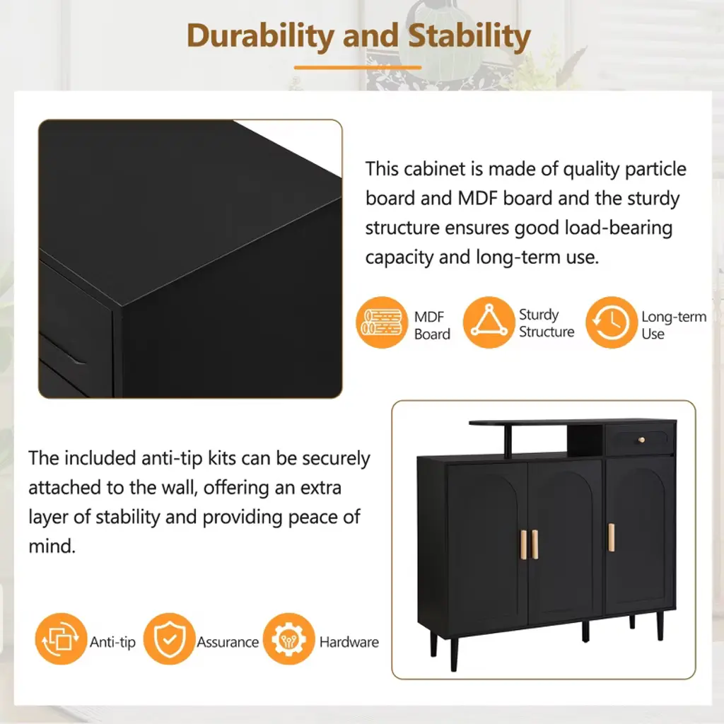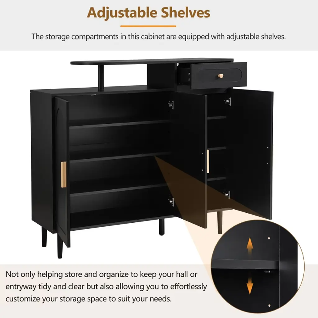 Yoocozz Cream Style Free-standing Shoe Cabinet Storage Sideboard With Adjustable Shelf And Drawer - Black