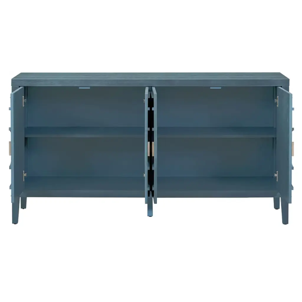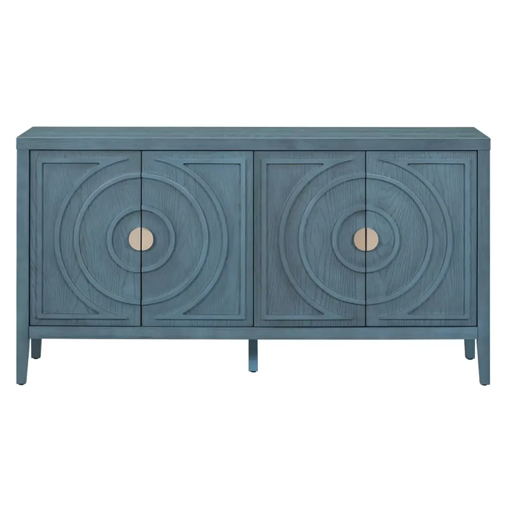 Yoocozz Mdf Retro Sideboard With Circular Groove Design Door And Round Metal Door Handle-antique Blue