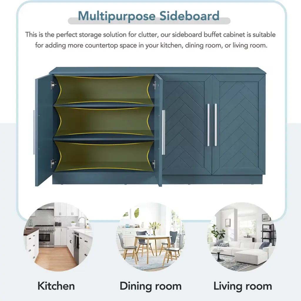 Yoocozz Sideboard Cabinet With Adjustable Shelves - Antique Blue