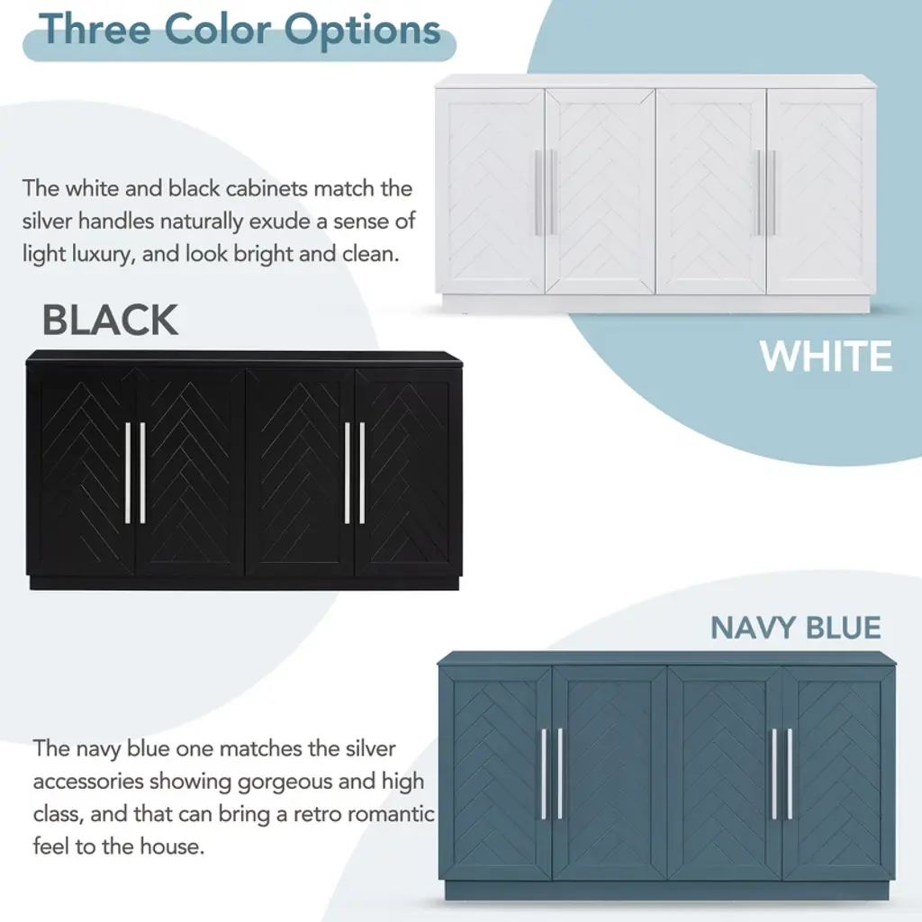 This sideboard buffet cabinet is a stylish and practical storage solution for your home. With its sleek design and high-quality construction, it offers ample space to keep your living room, kitchen, or dining room organized. The cabinet features adjustable shelves for customizable storage, ensuring you can keep your essentials neatly arranged. Available in three elegant colors, this sideboard adds a touch of sophistication to any room. Easy to assemble with detailed instructions, it's a perfect addition to enhance both functionality and aesthetics in your home.