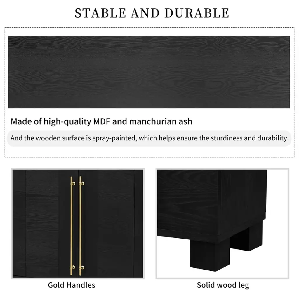Yoocozz Wood Sideboard Cabinet With Adjustable Shelves - Black